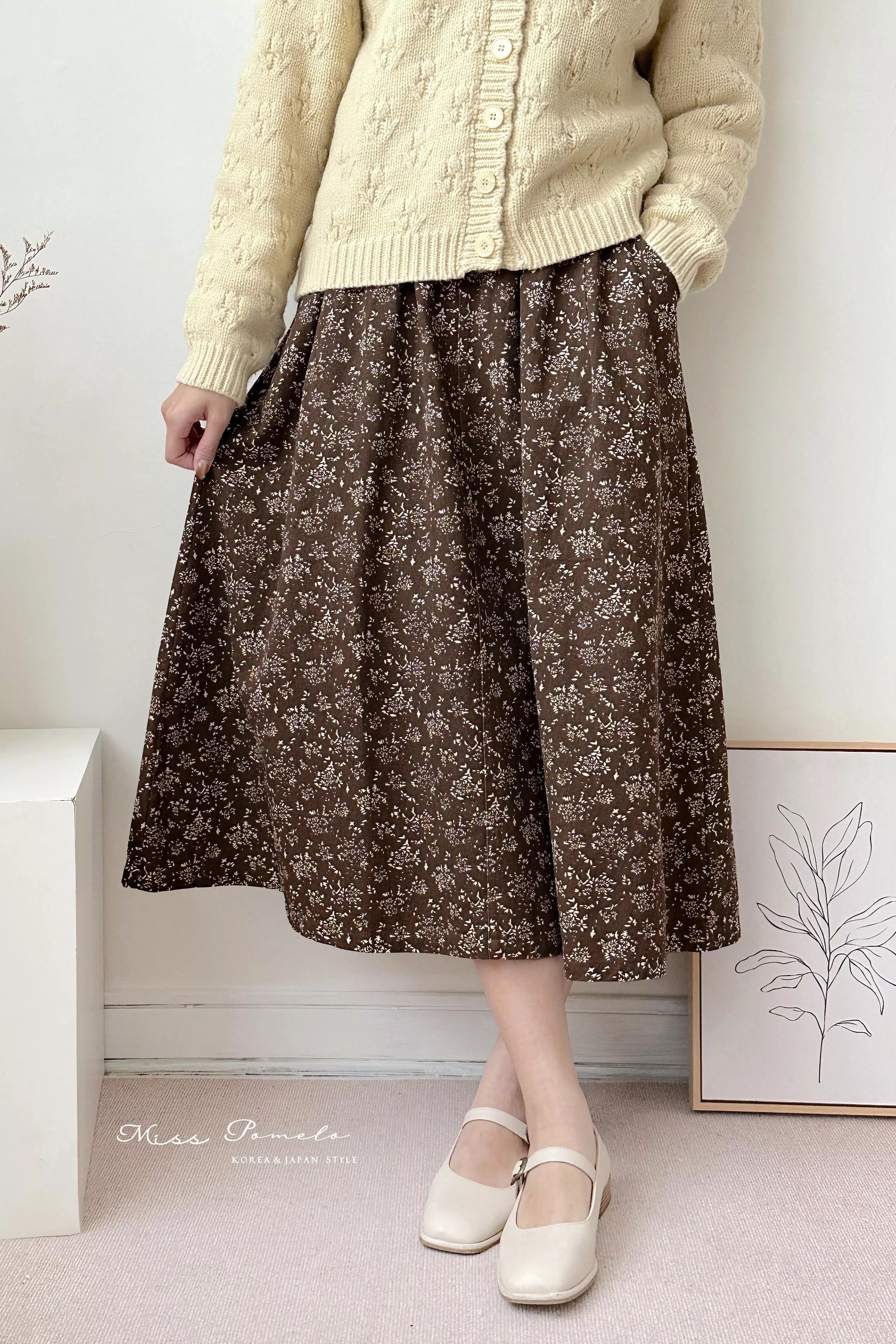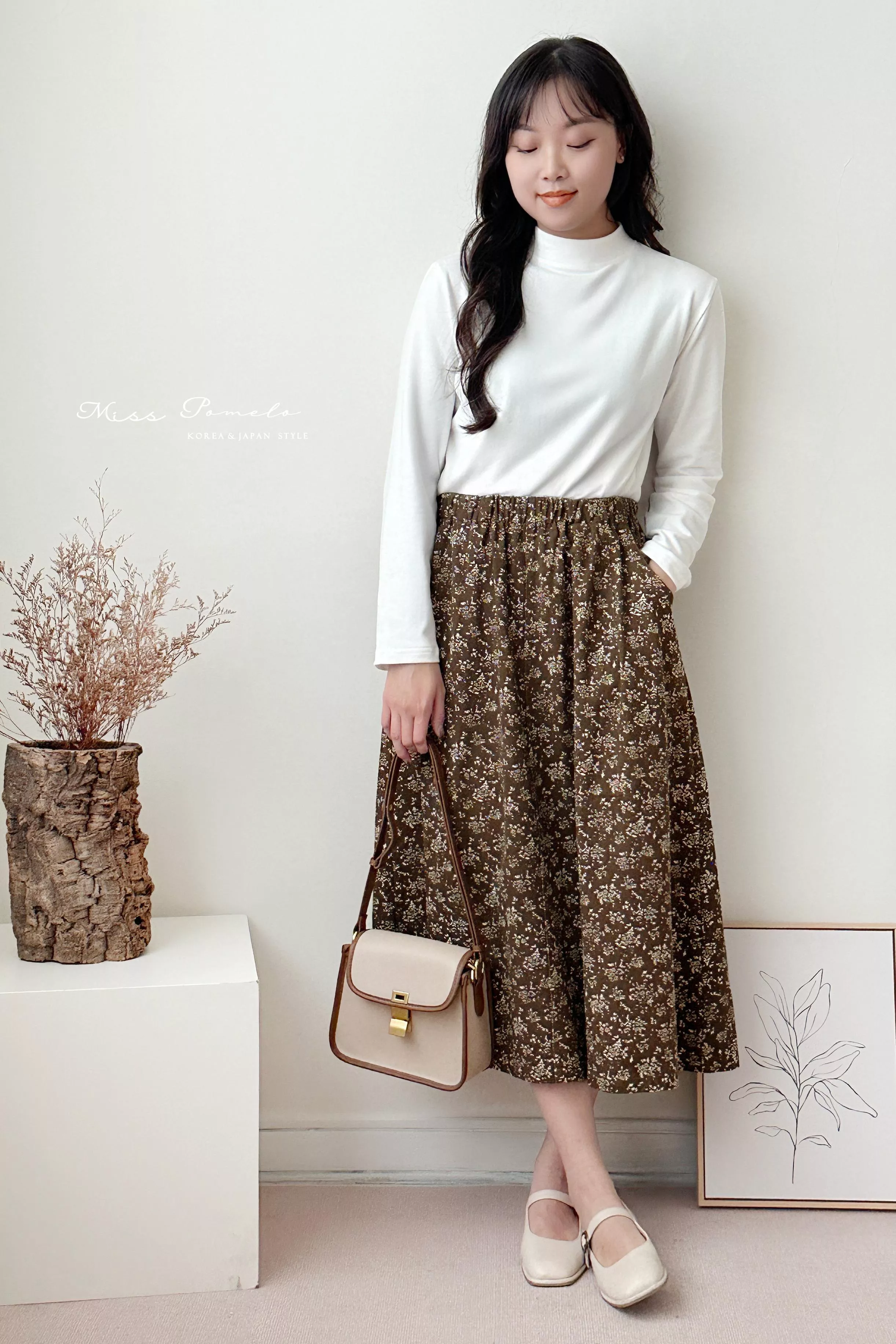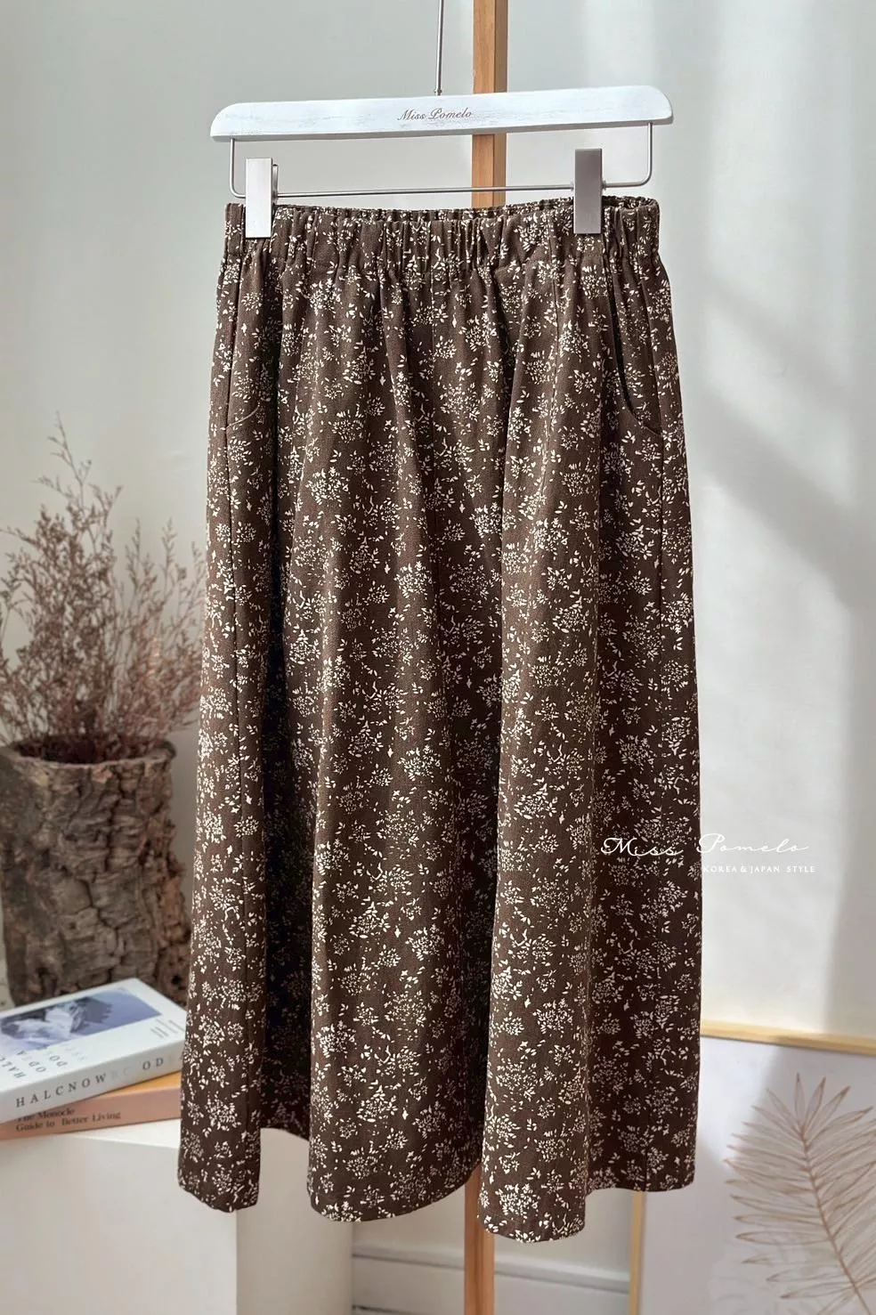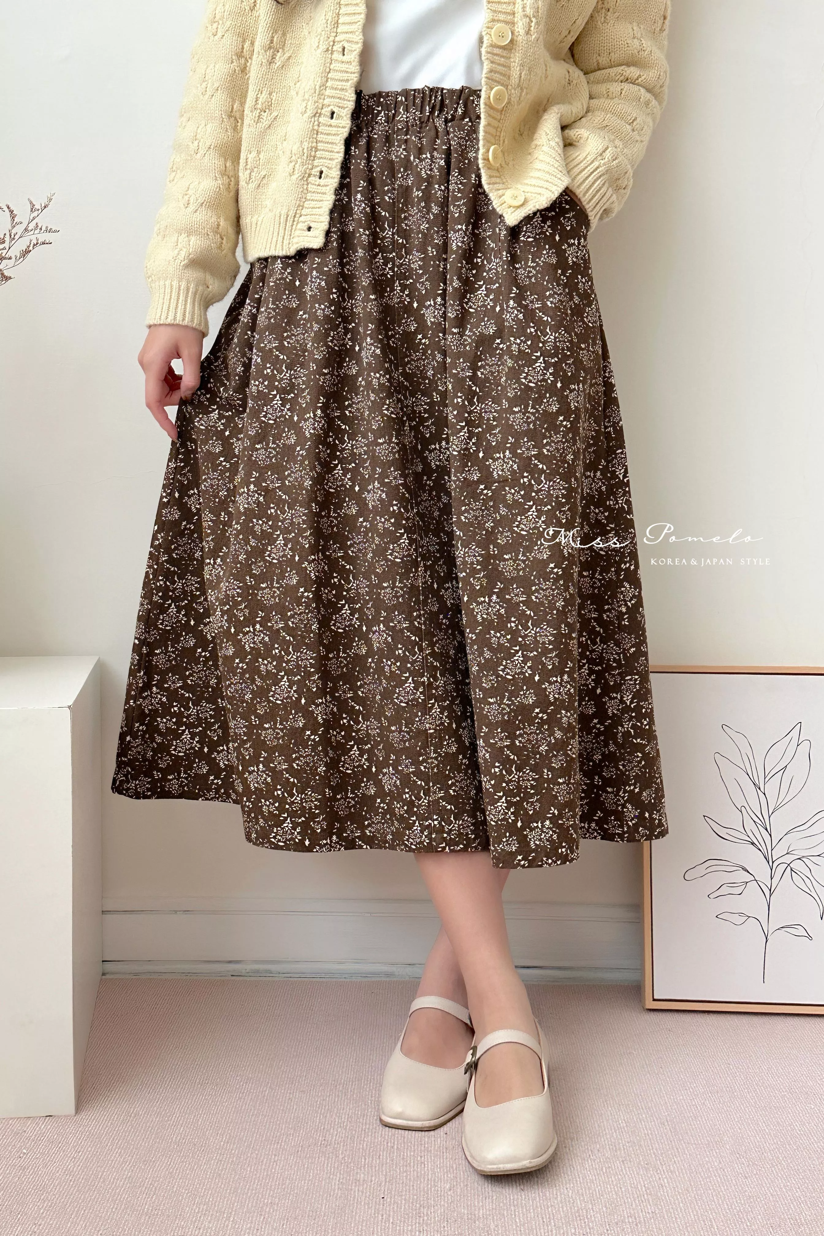 碎花A字裙|復古花影。日系森林系溫柔鬆緊腰全棉印花長裙