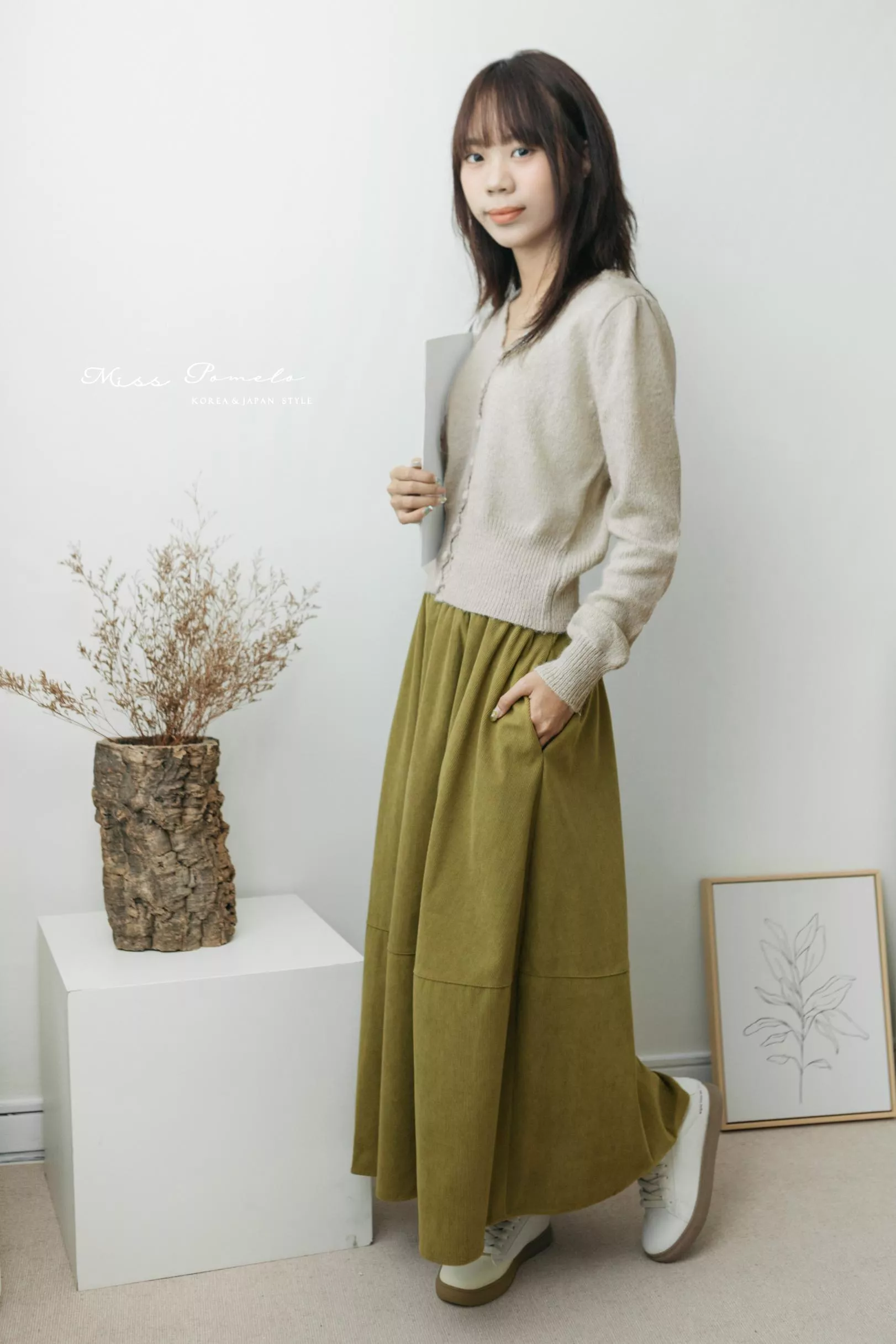 - 柔暖的燈芯絨遇上飽滿花苞A字剪裁,