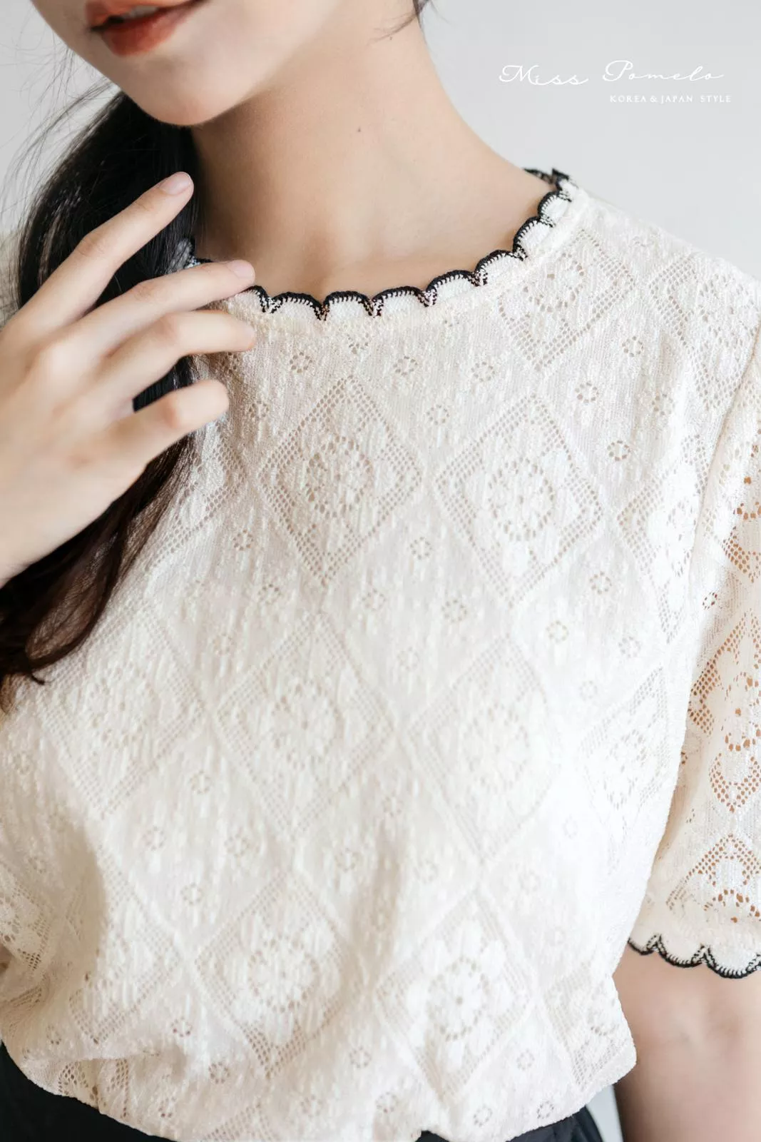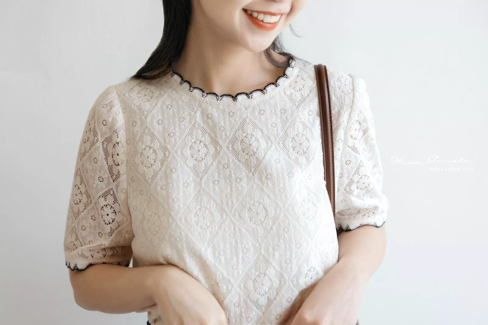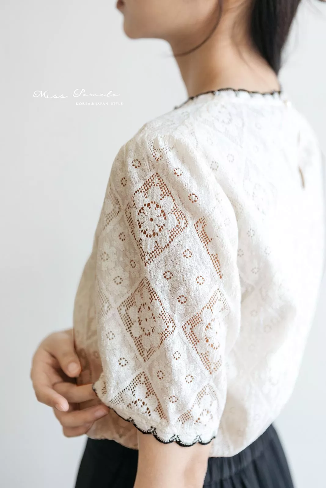 - 一件充滿法式氣息的蕾絲上衣,如詩如畫地映照著日光下的溫柔。