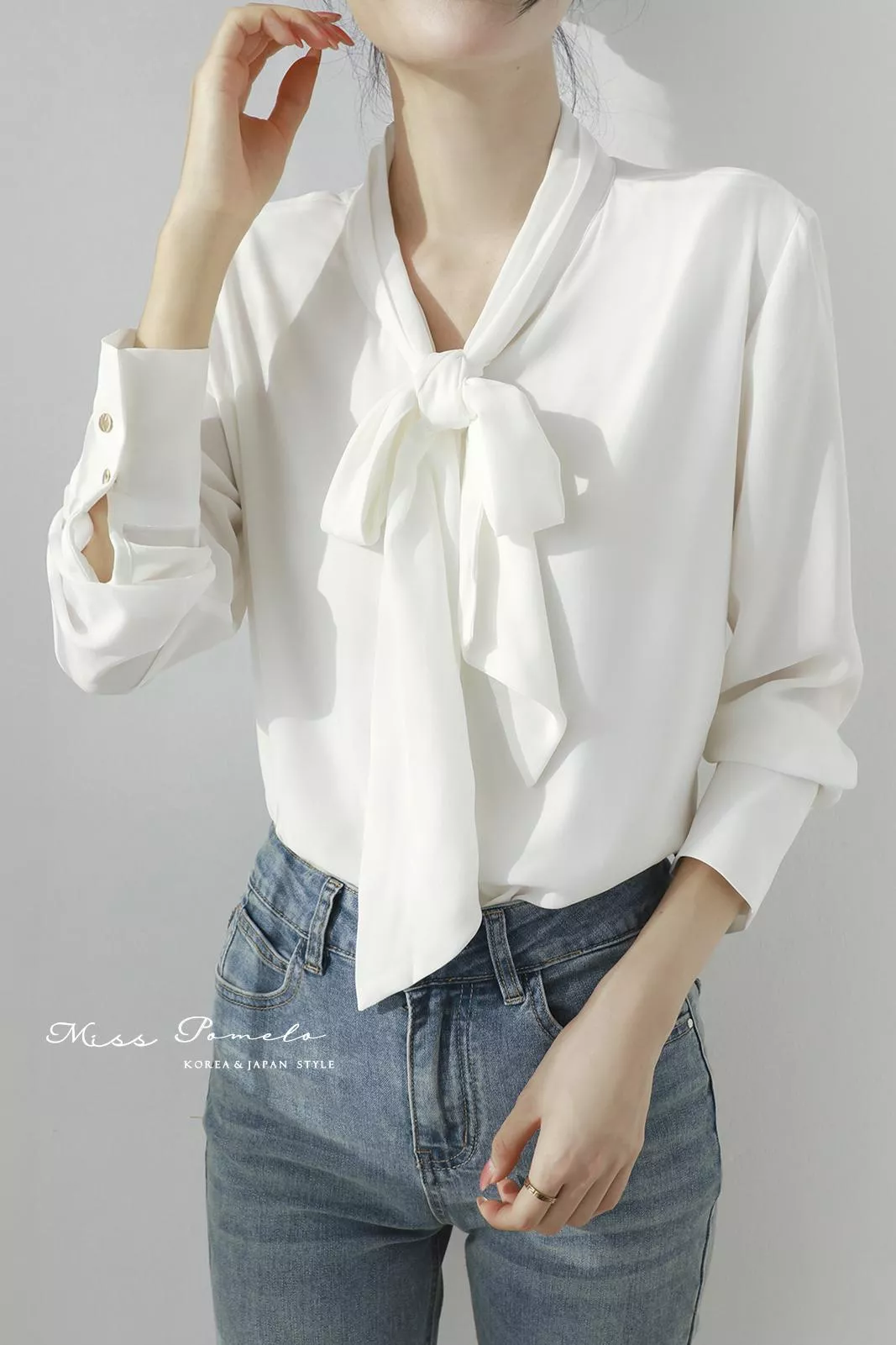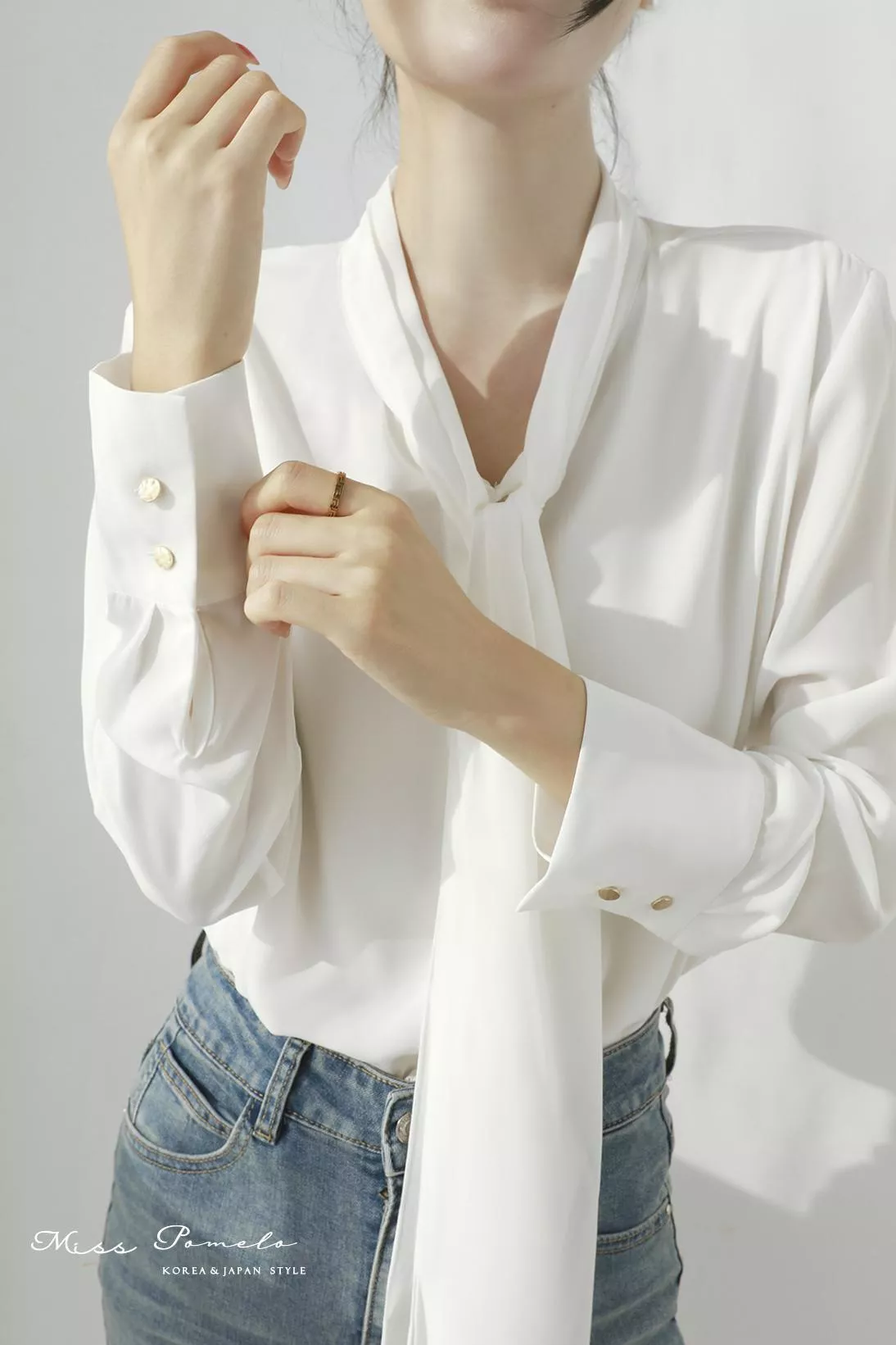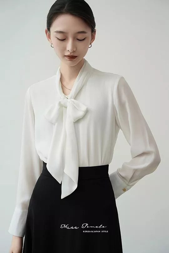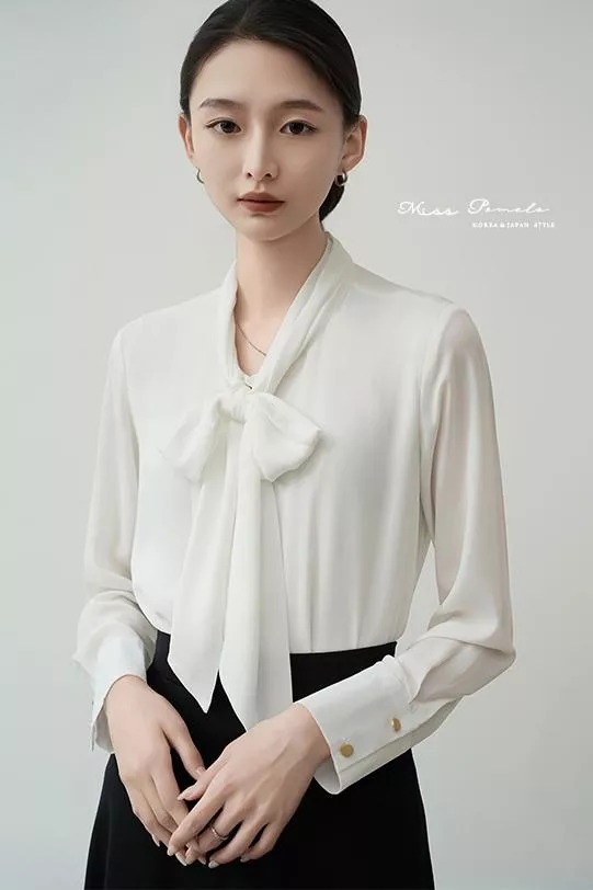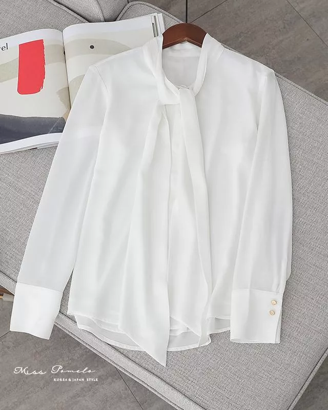 通勤長袖襯衫|自信優雅。韓系簡約時髦綁帶金屬扣長袖雪紡上衣