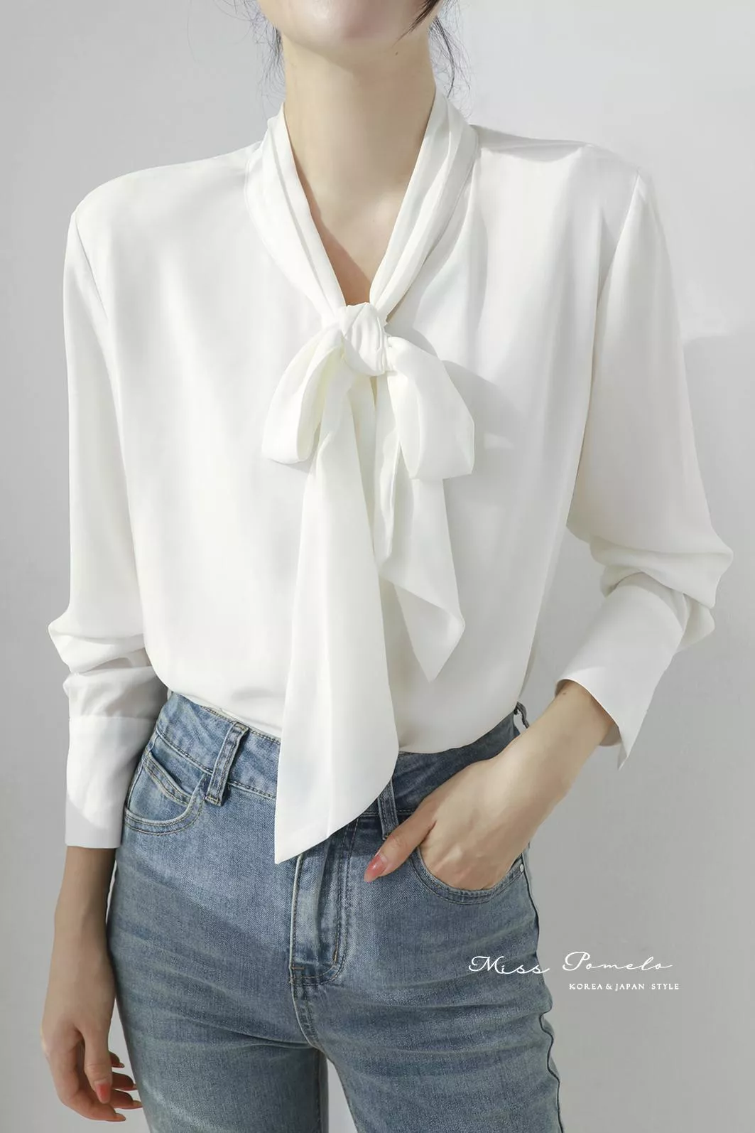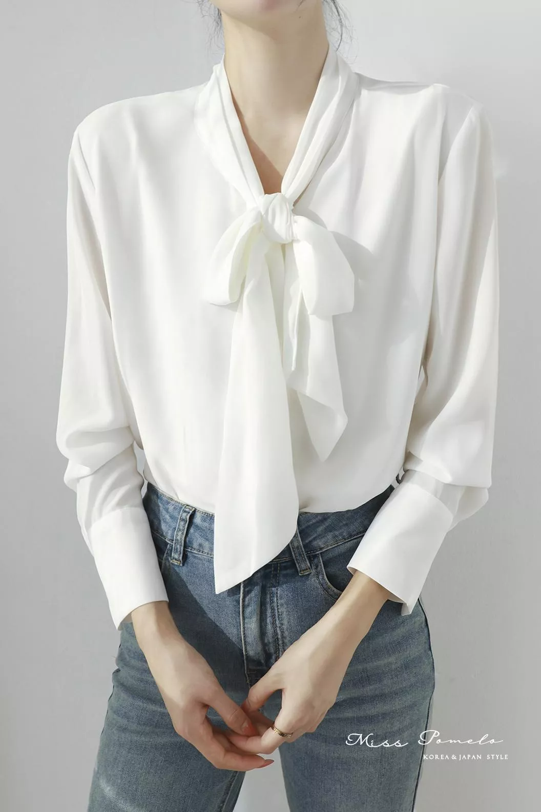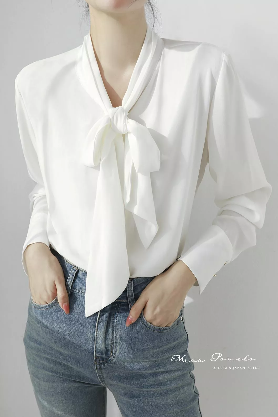 通勤長袖襯衫|自信優雅。韓系簡約時髦綁帶金屬扣長袖雪紡上衣