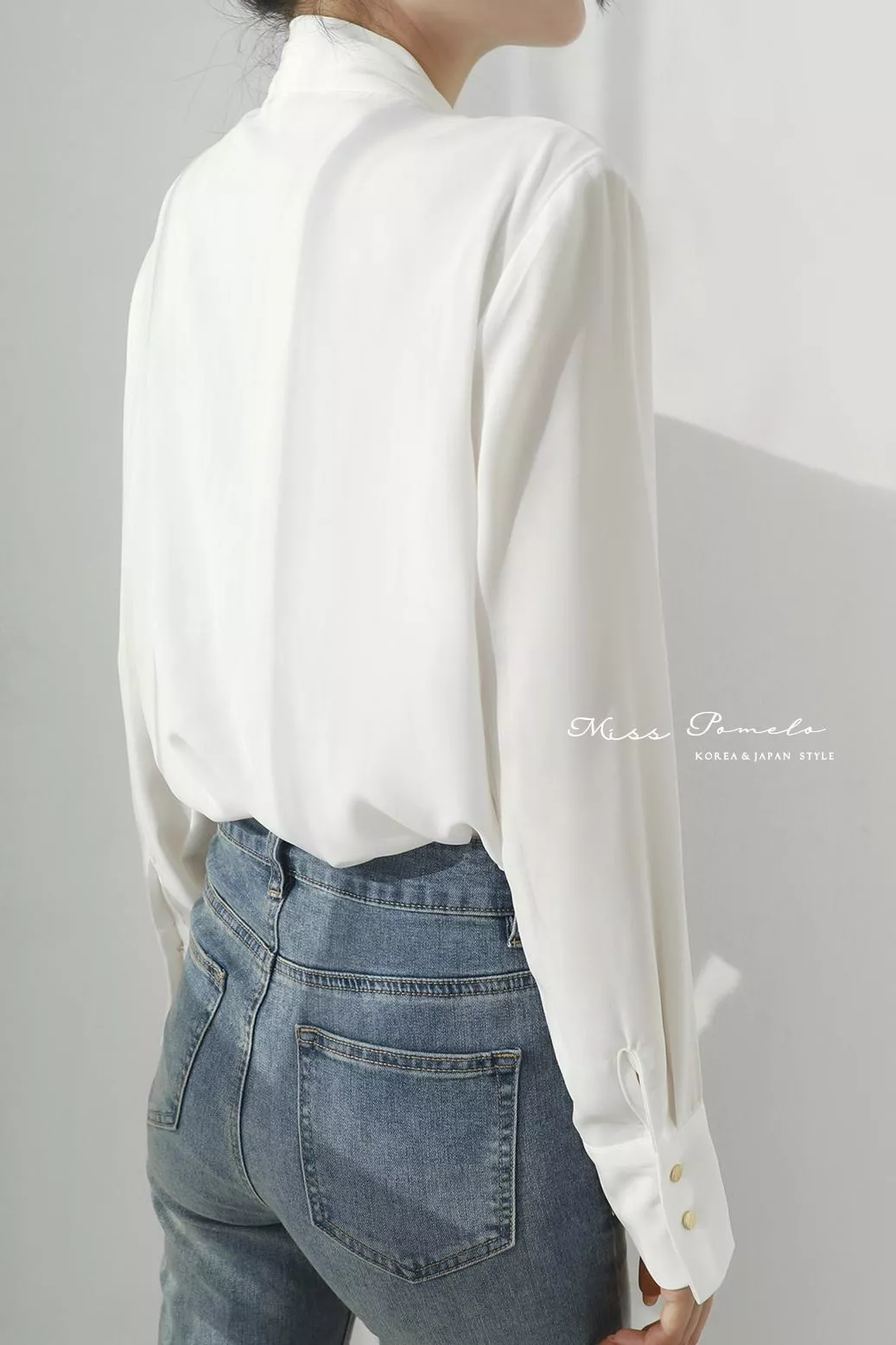 ● 領口一粒金屬釦,呼應袖口的雙釦細節,在舉手投足間微閃金光。