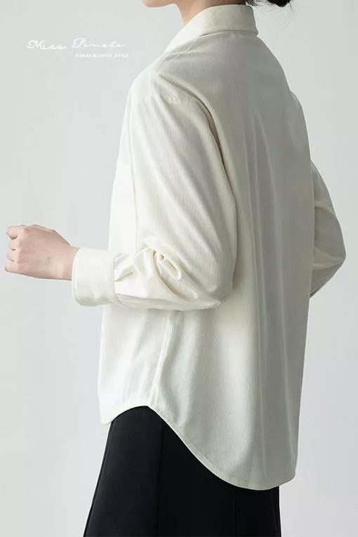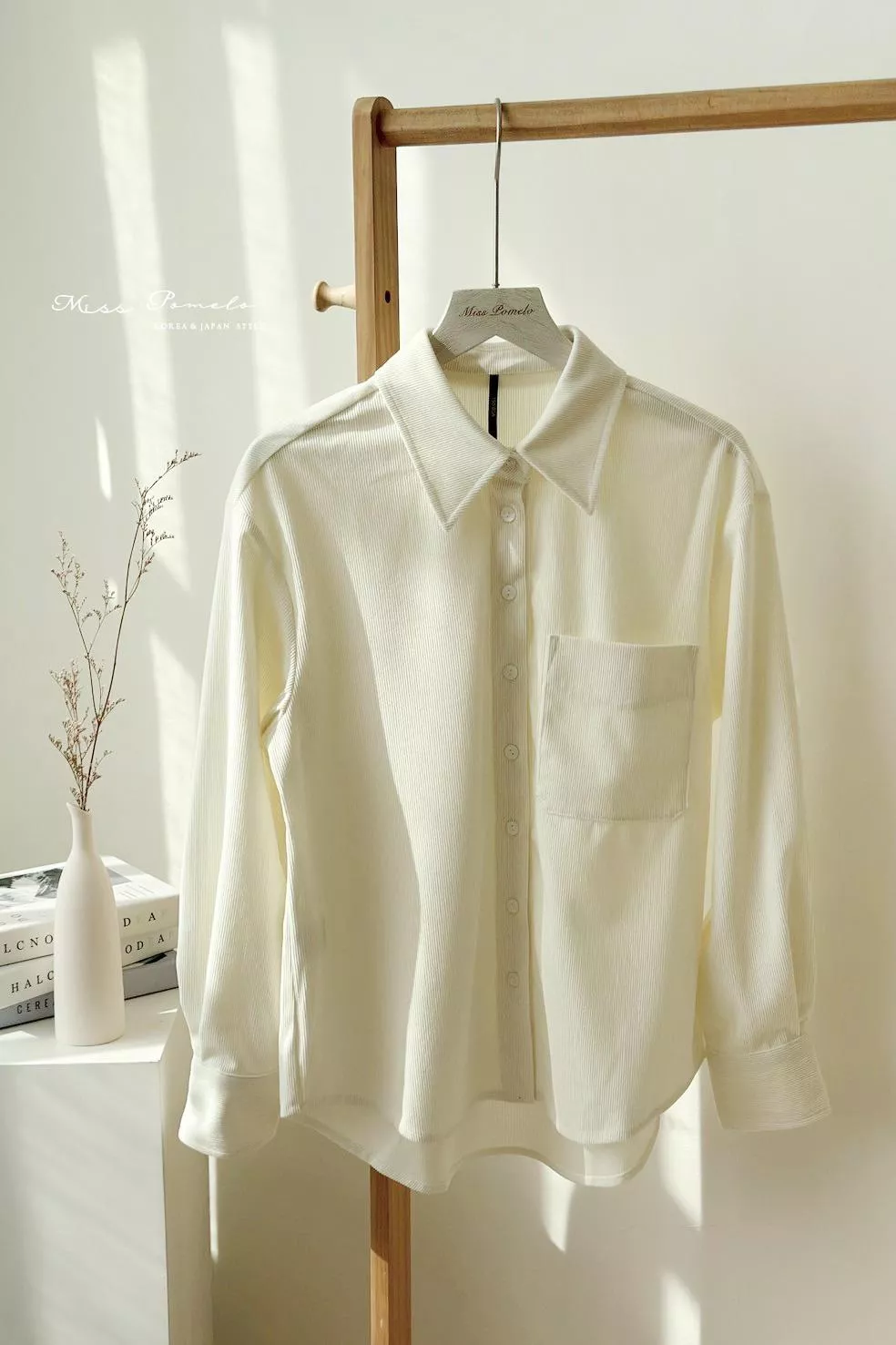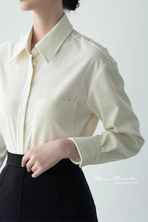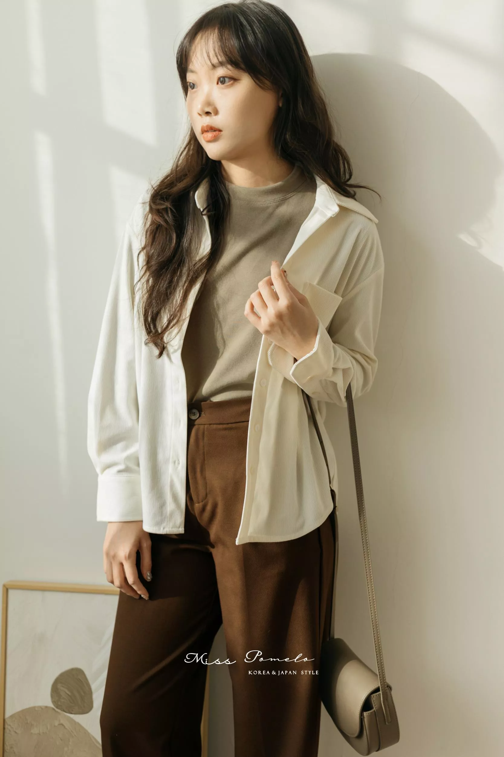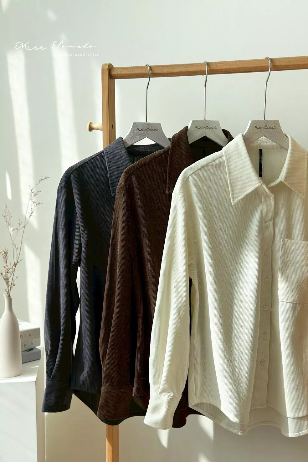 燈芯絨長袖襯衫|冬日序章。日系復古文青翻領口袋長袖襯衫