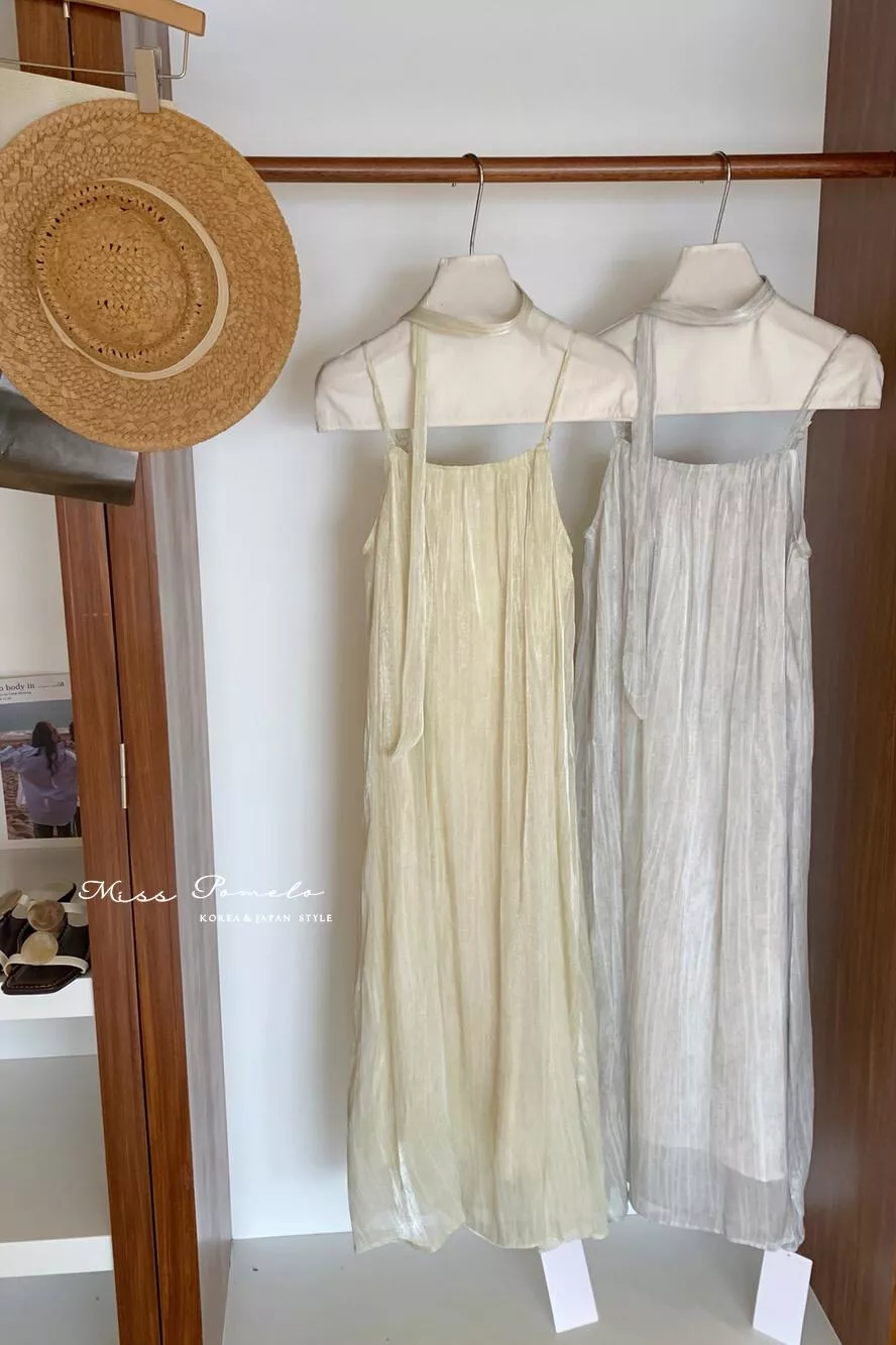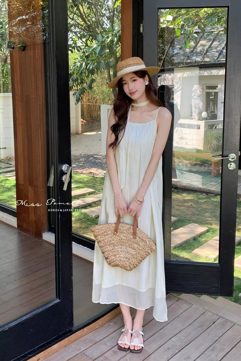 ✔ 細肩帶設計搭配自然垂墜的寬鬆 A 字輪廓,