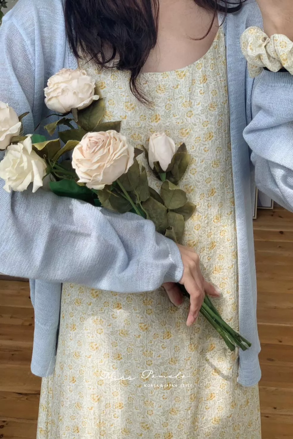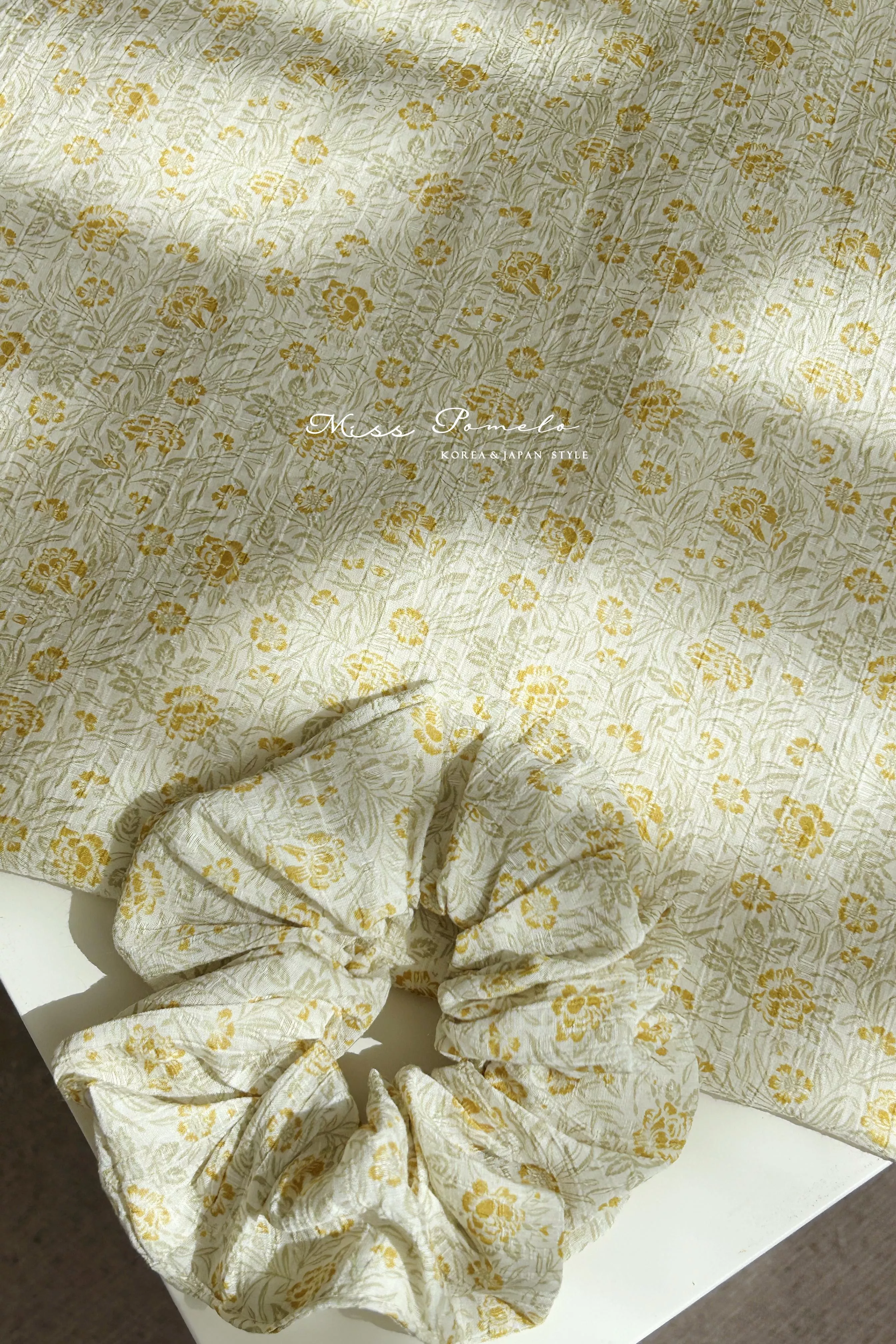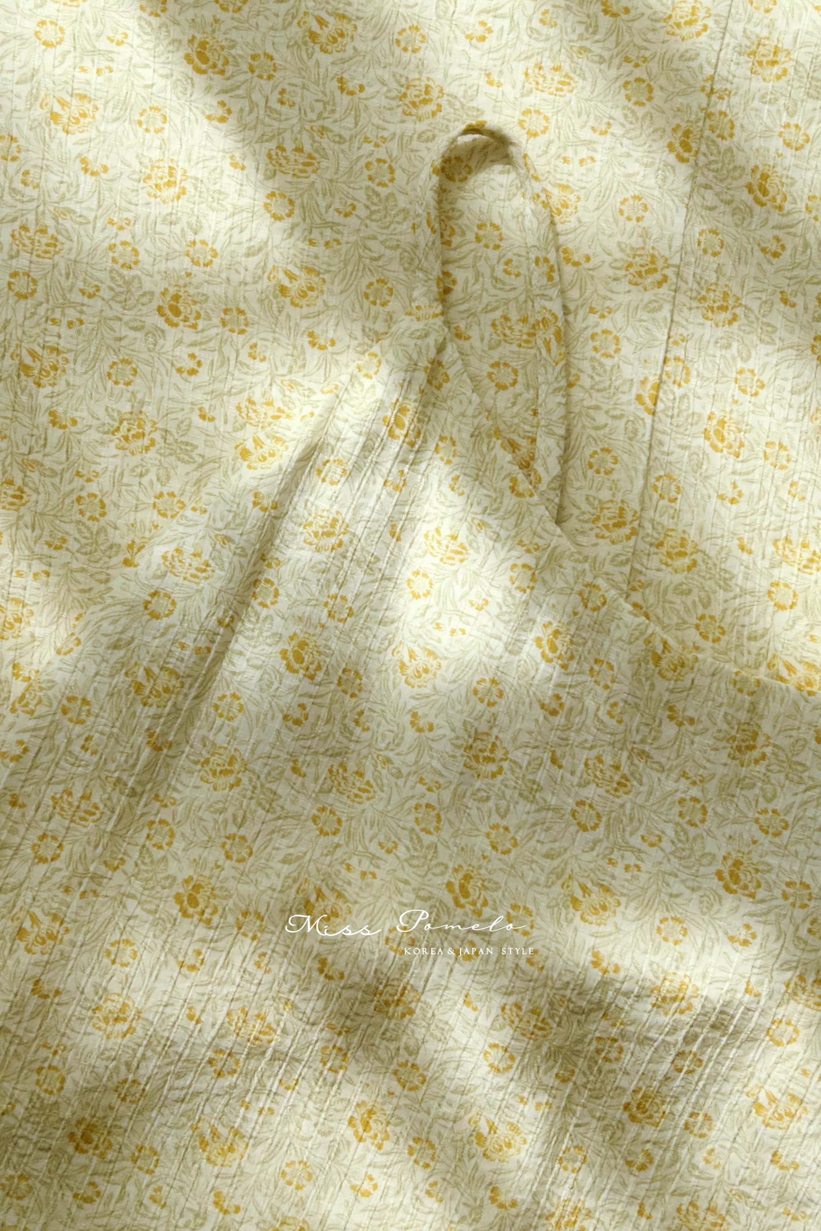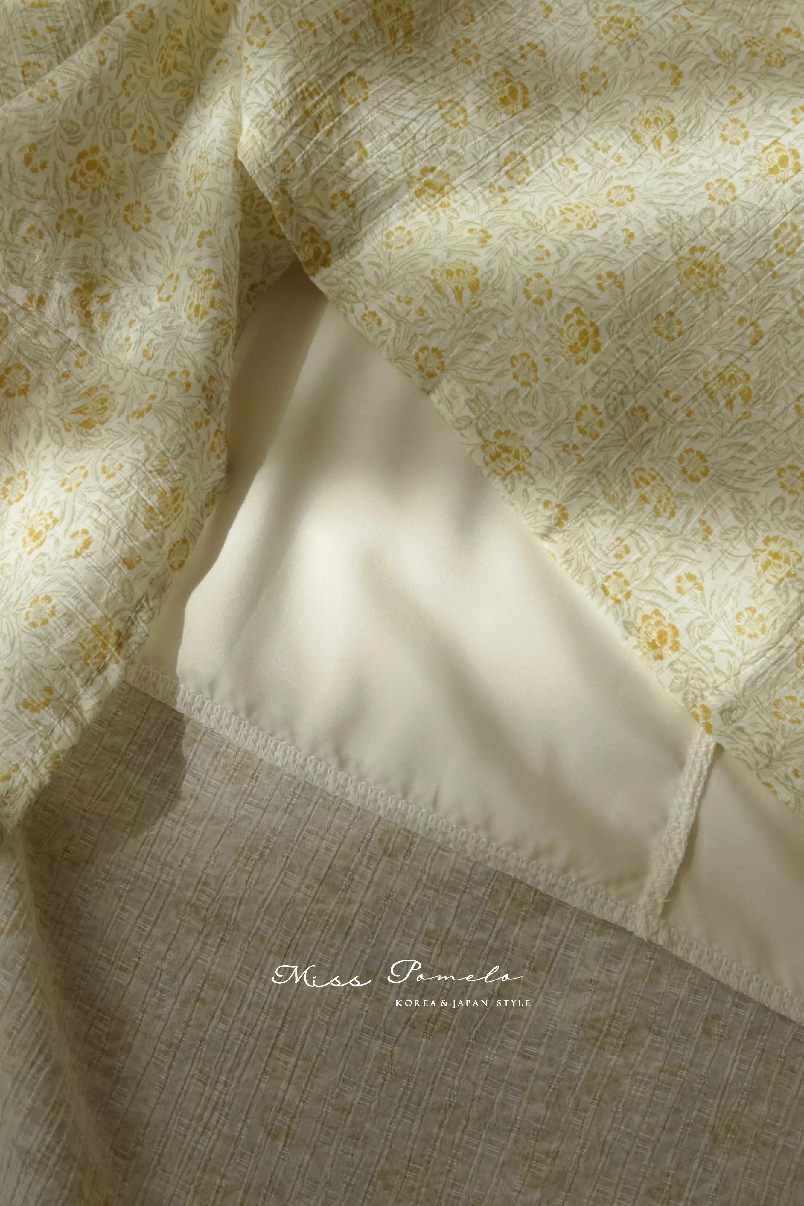 暖暖的香草米底色,點綴著細緻的小黃花。
