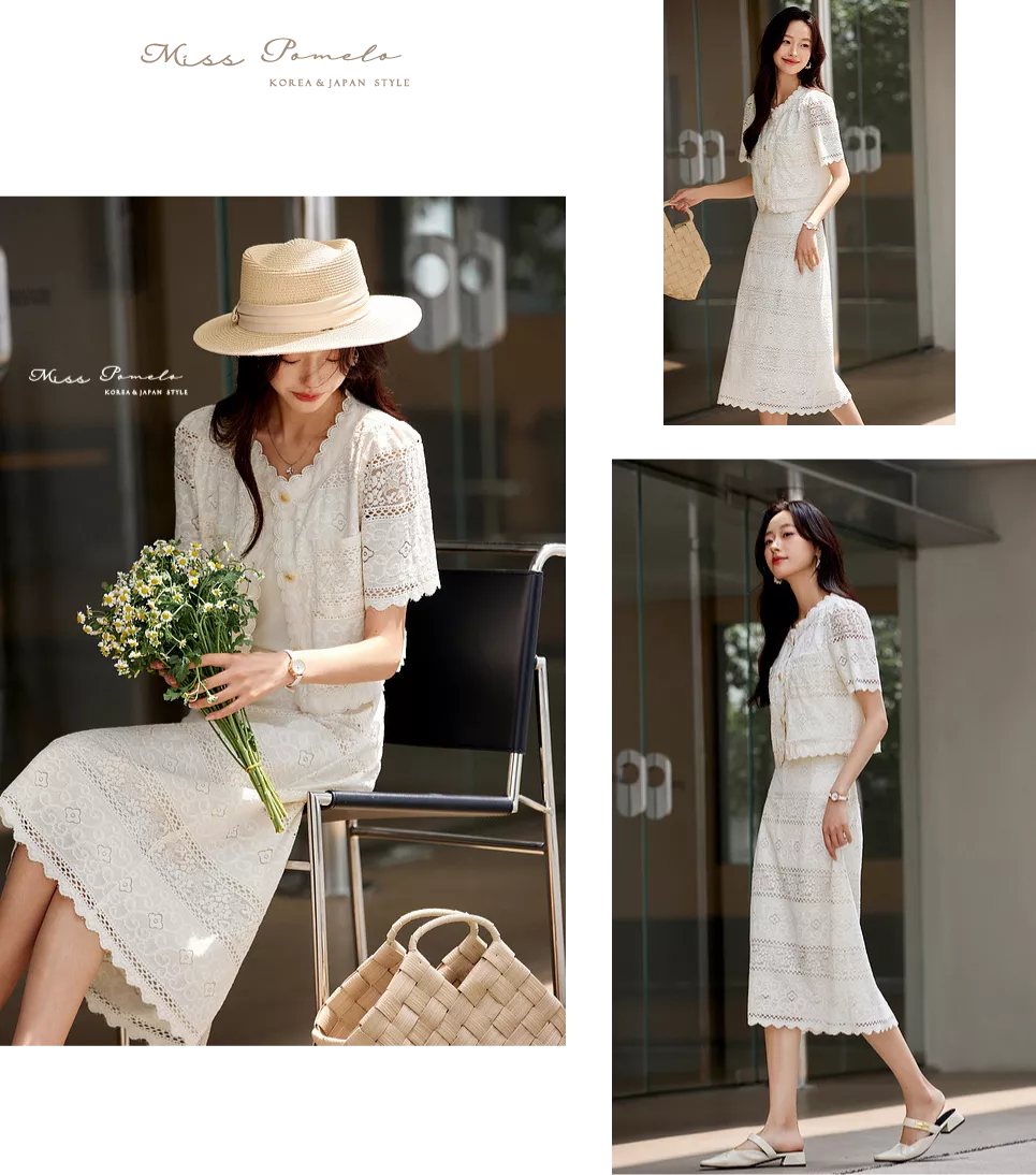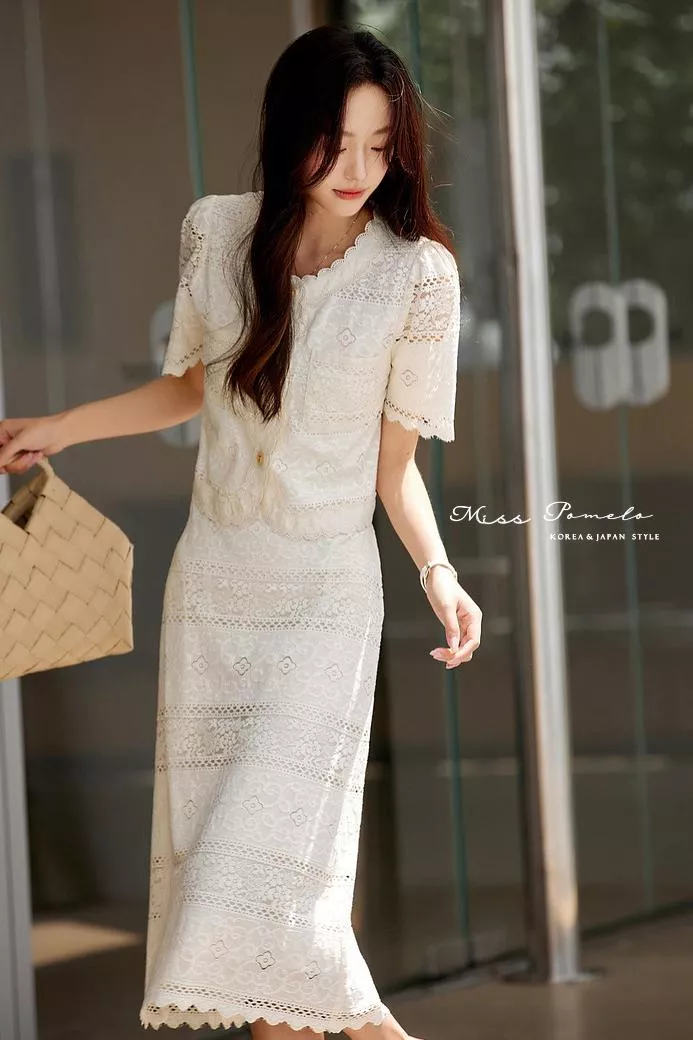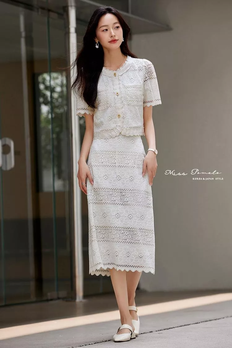 行走時裙襬自然擺動,蕾絲花紋隨光影變化,呈現出 溫柔細膩的高級感。