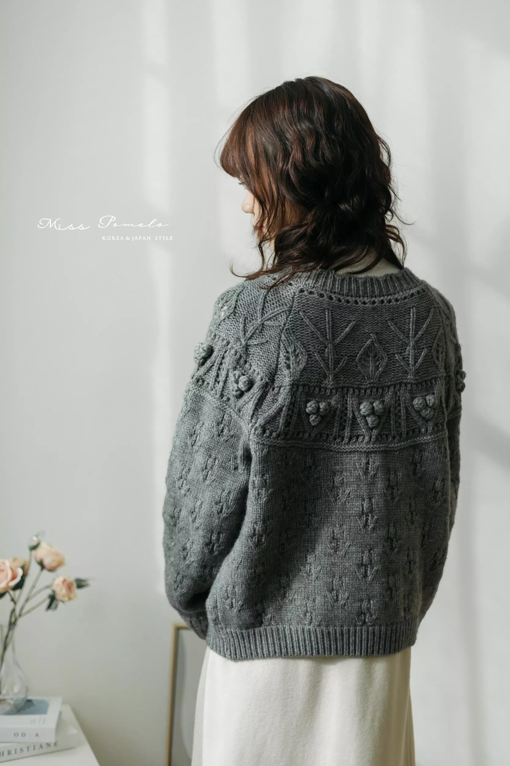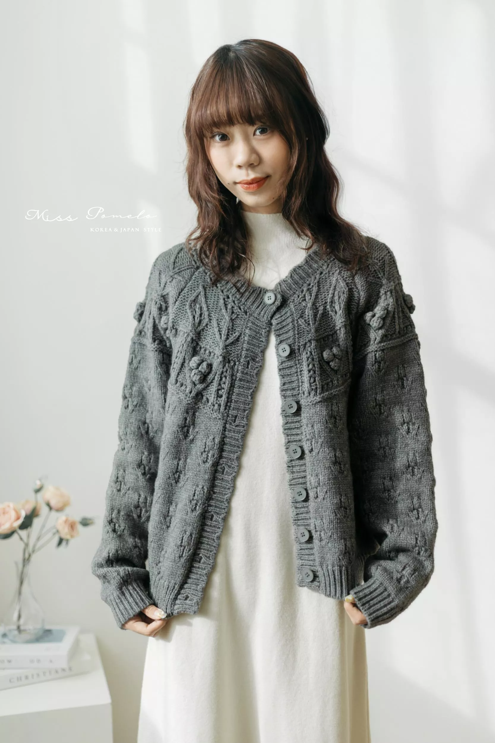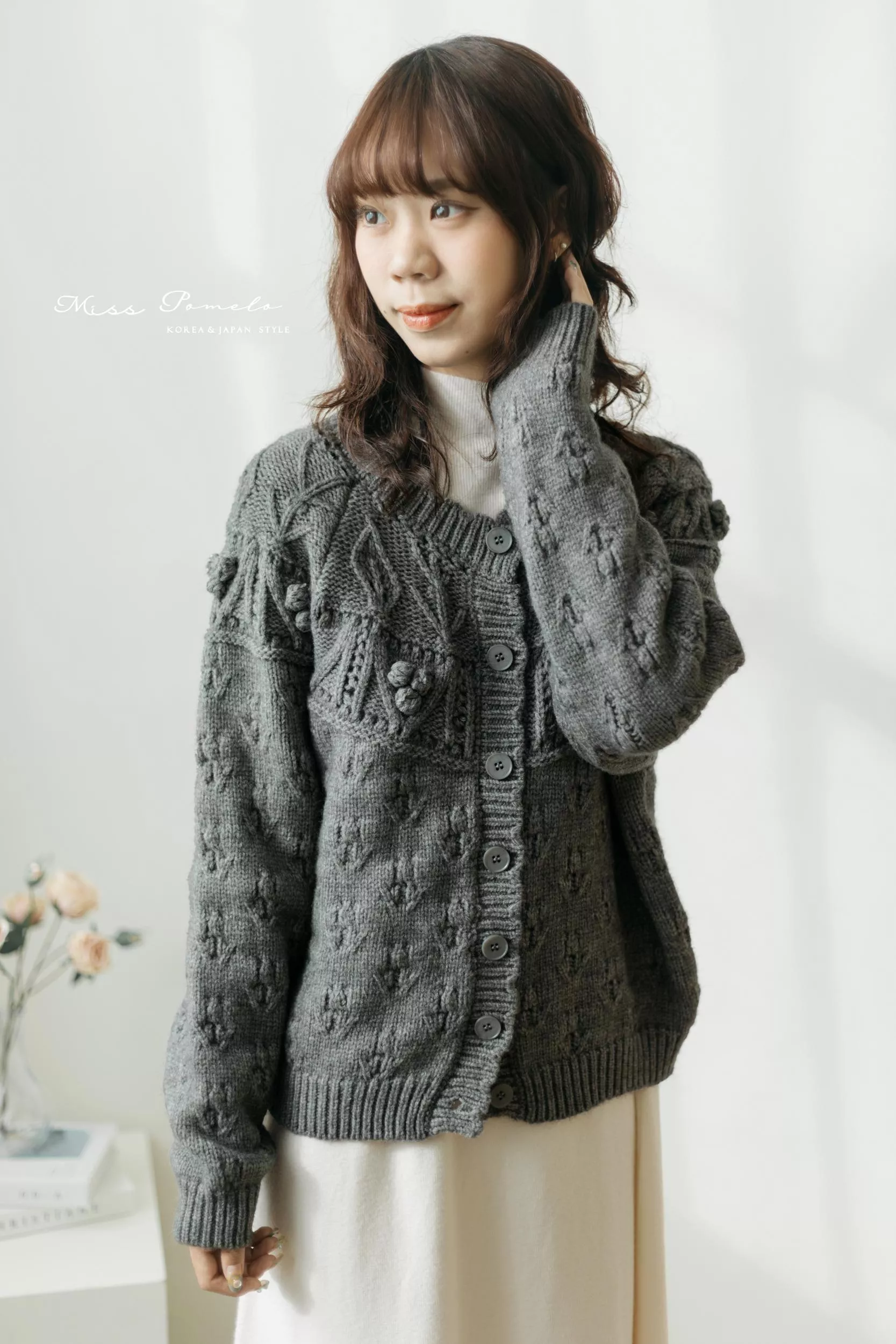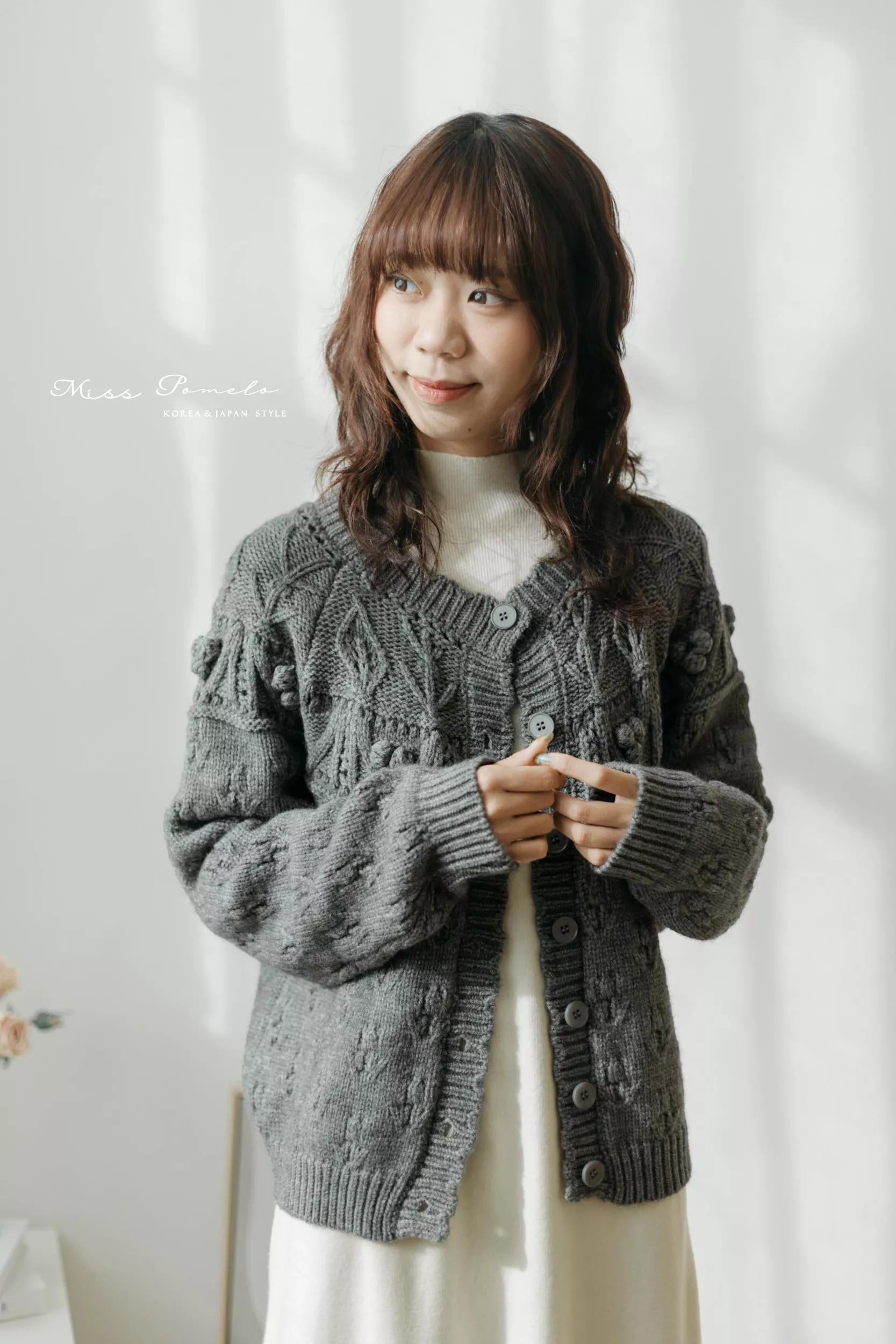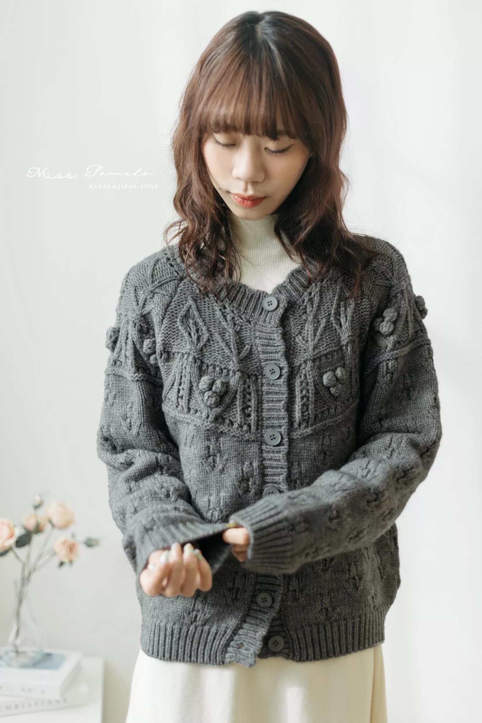毛衣外套|森林果園。日系復古溫暖手工立體球球鏤空編織針織外套
