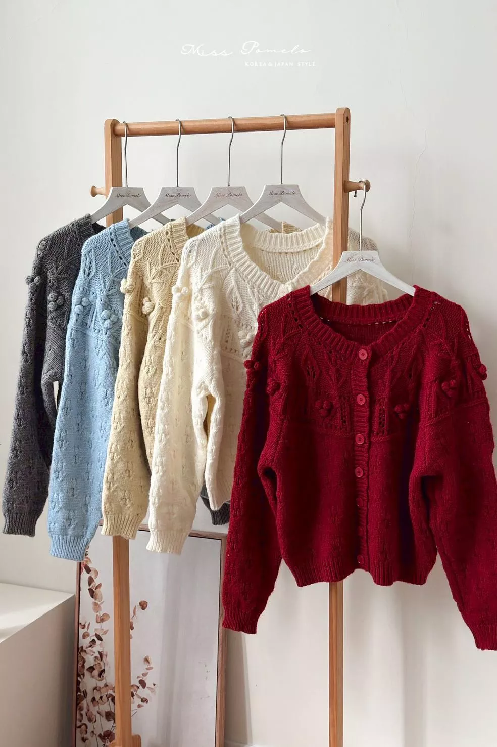 以「立體織紋+手工球球」打造滿版的細節層次,像穿上一件有故事的手作小珍藏。