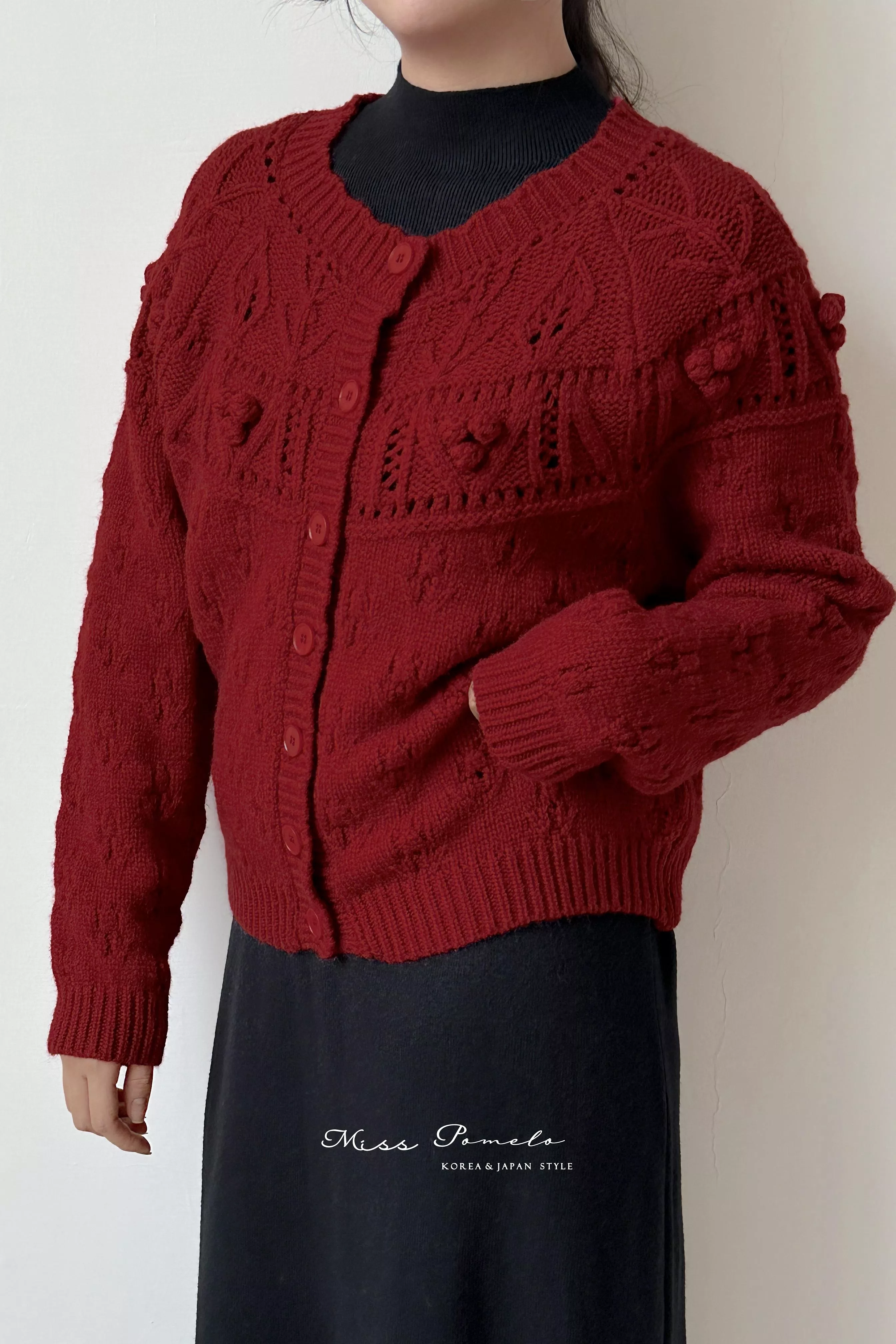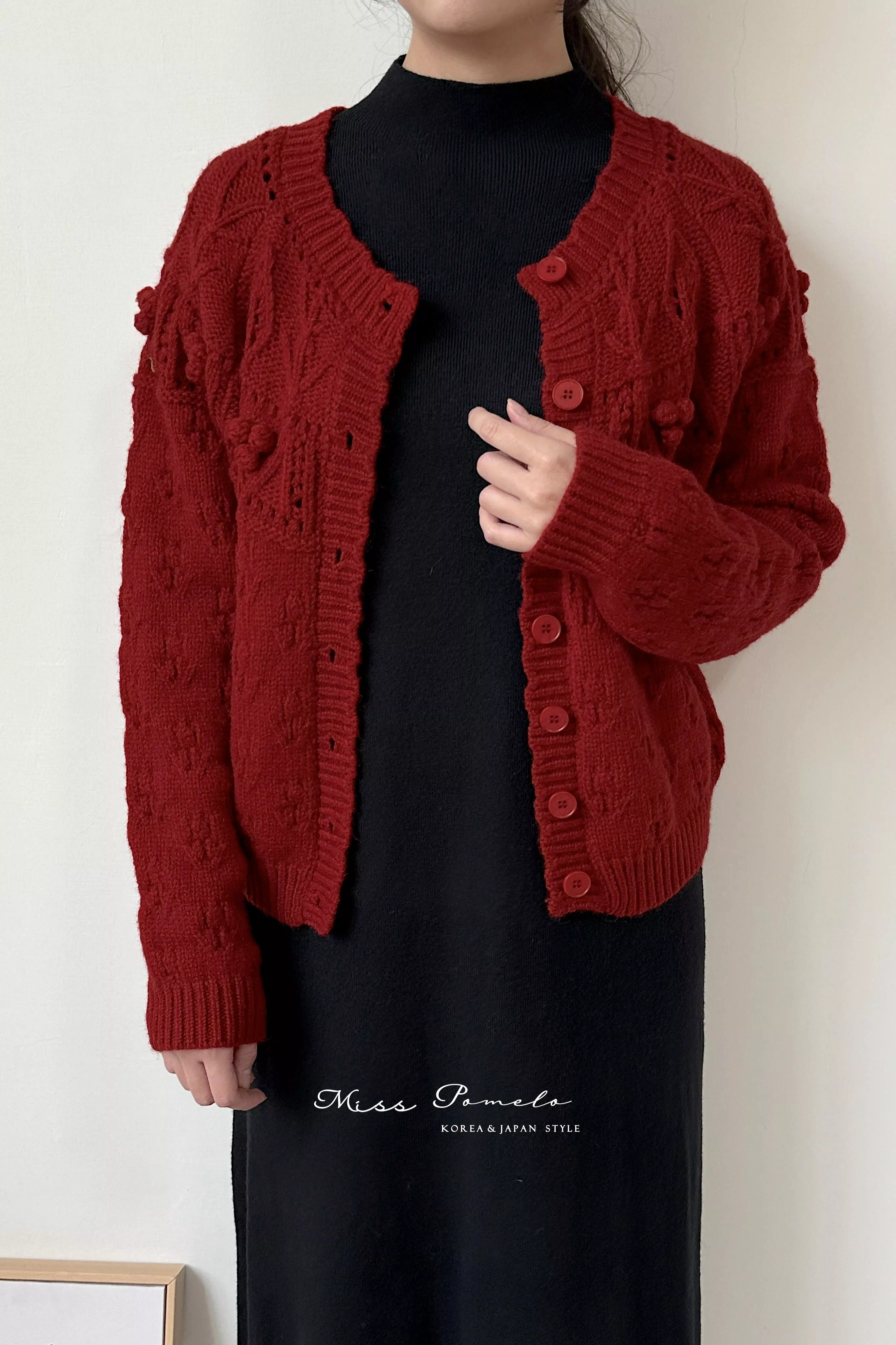 以「立體織紋+手工球球」打造滿版的細節層次,像穿上一件有故事的手作小珍藏。
