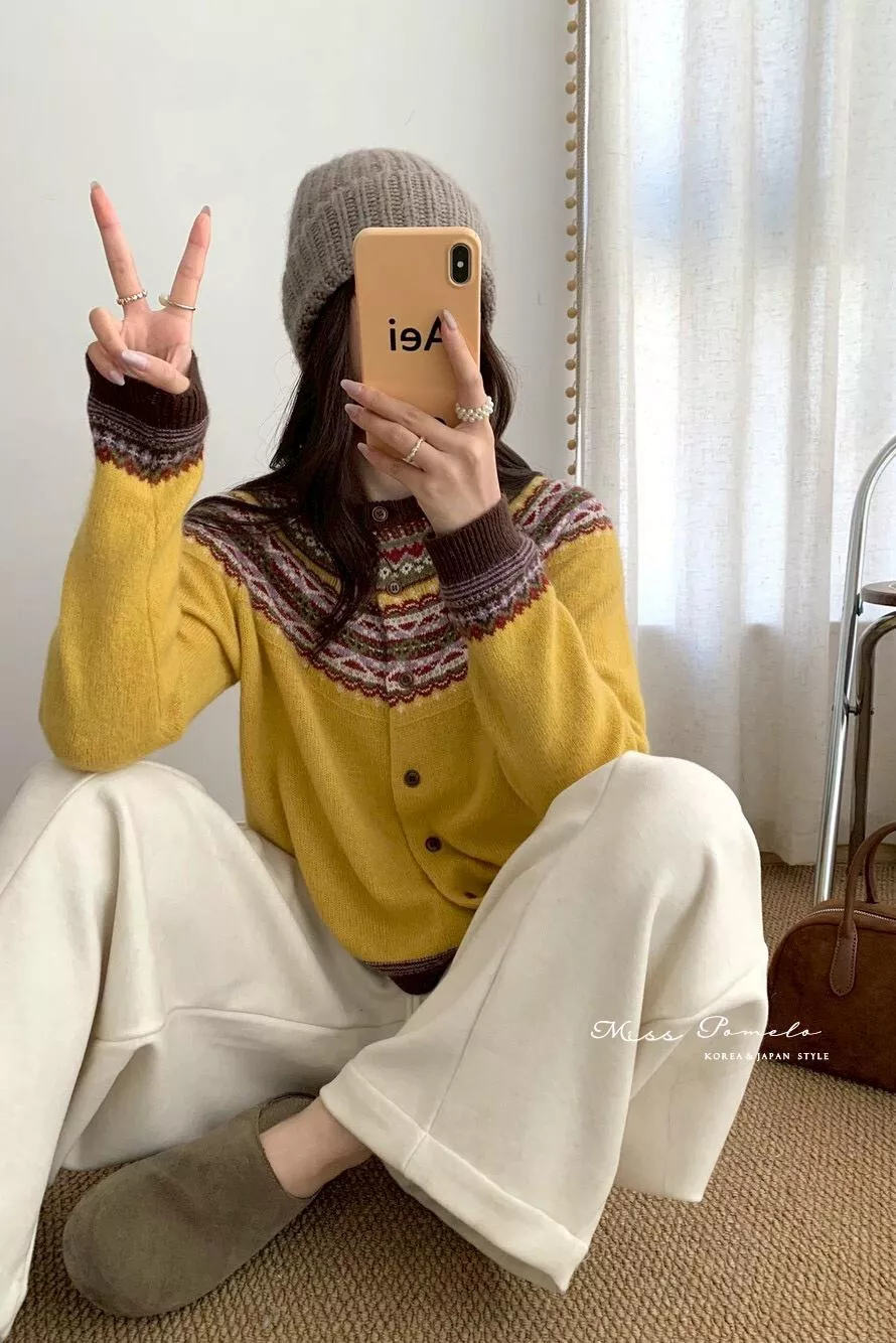 — 灰色的冬天,就該用一件繽紛提花,替日常注入一點溫度❄️