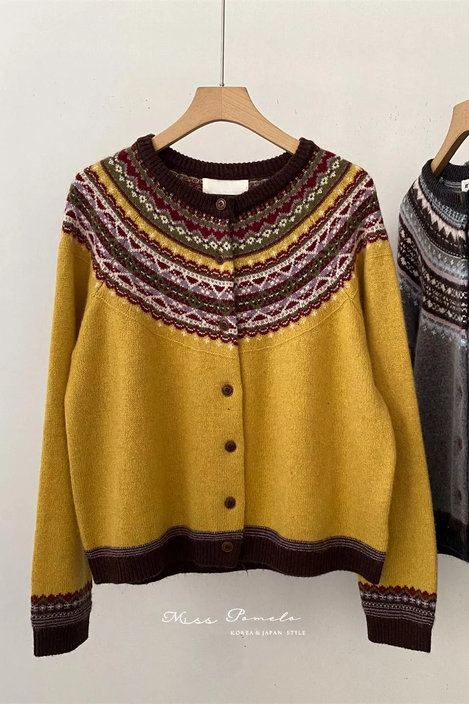 深色與亮色交錯的費爾島圖紋,層層堆疊出北歐獨有的節奏與美感。