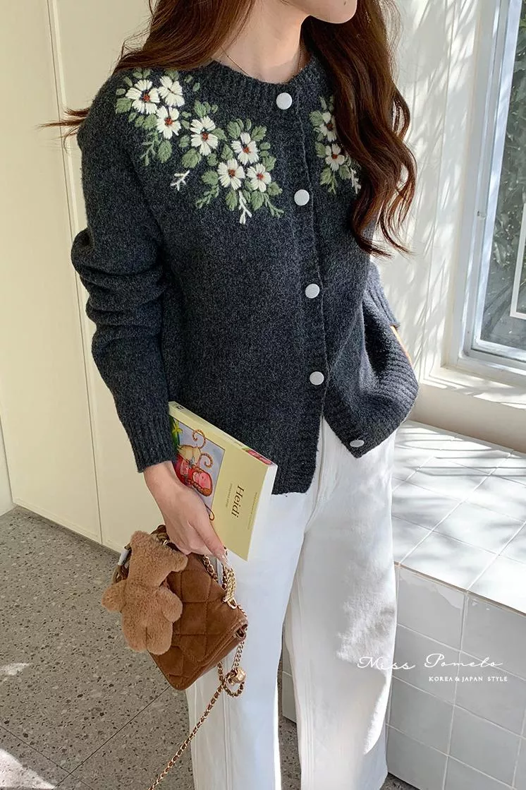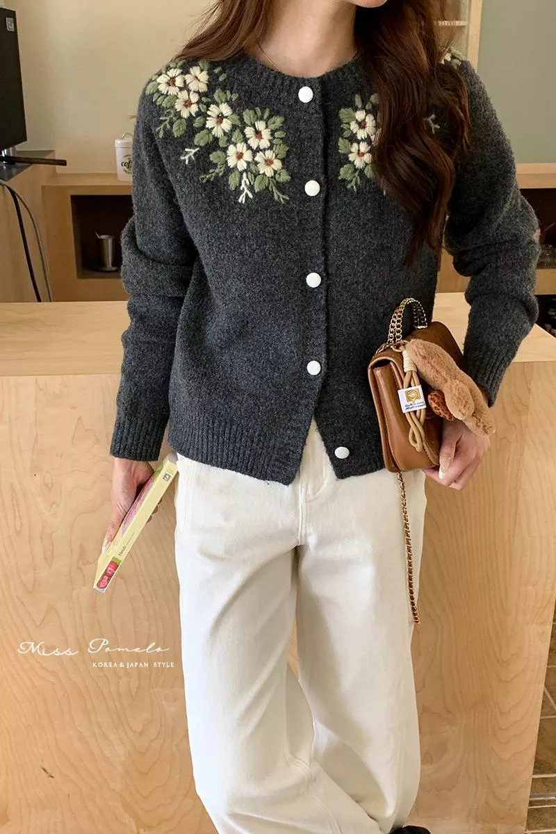 襯托刺繡花朵的藍紫與墨綠更顯立體