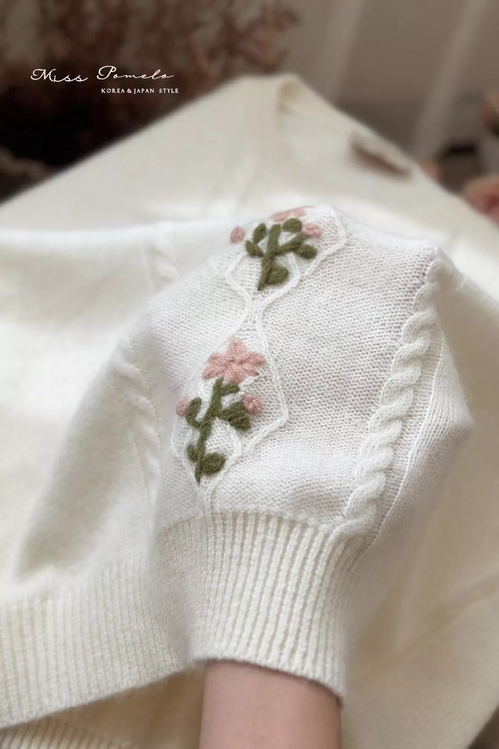 ➰淡雲米白:柔軟奶霧色,不偏黃、不厚重,最能襯托花朵刺繡的粉綠氣質 tone,整體乾淨又日系。