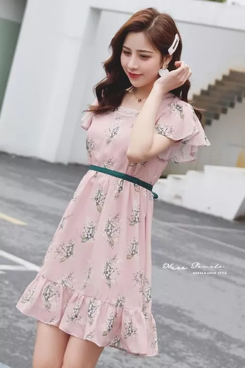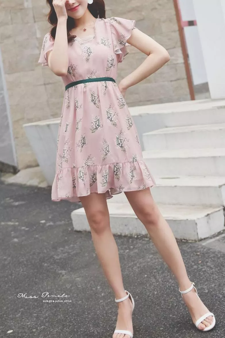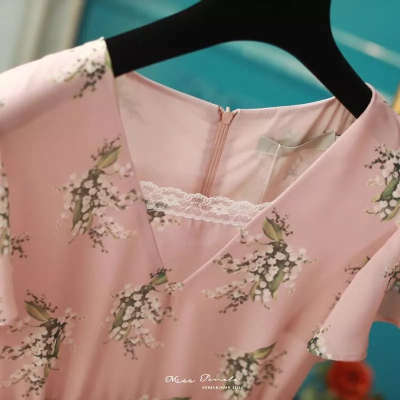 充滿法式優雅氣息的一款印花麻紗雪紡短洋裝