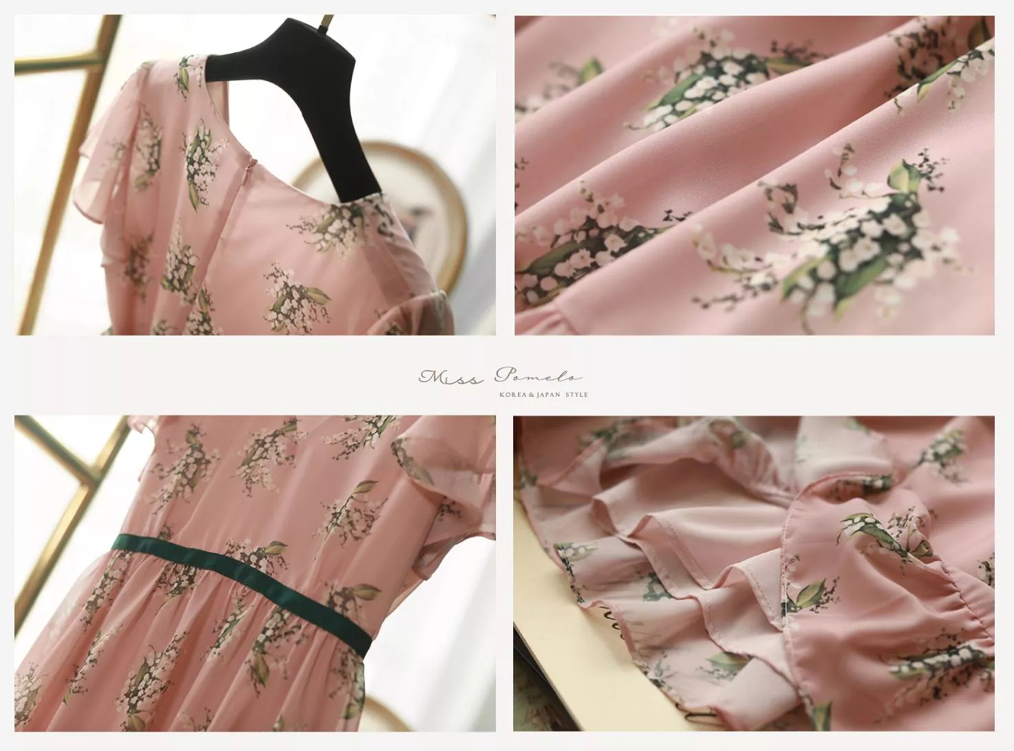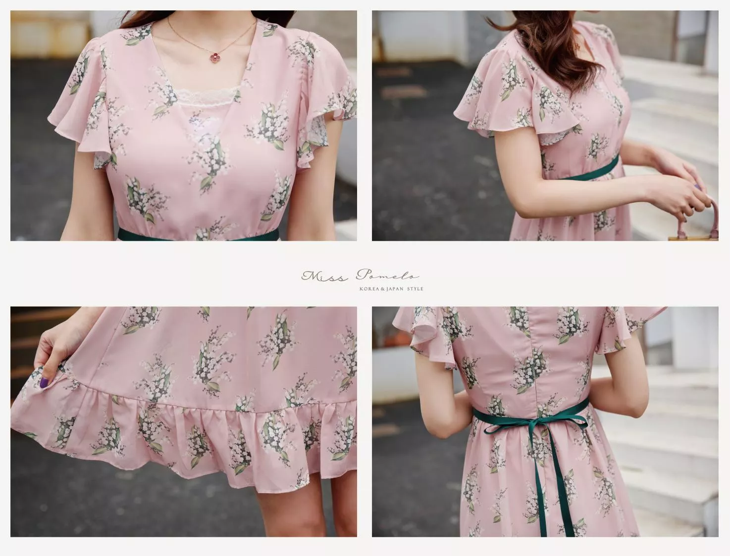 腰圍處撞色綠緞帶拼接毫無違和感