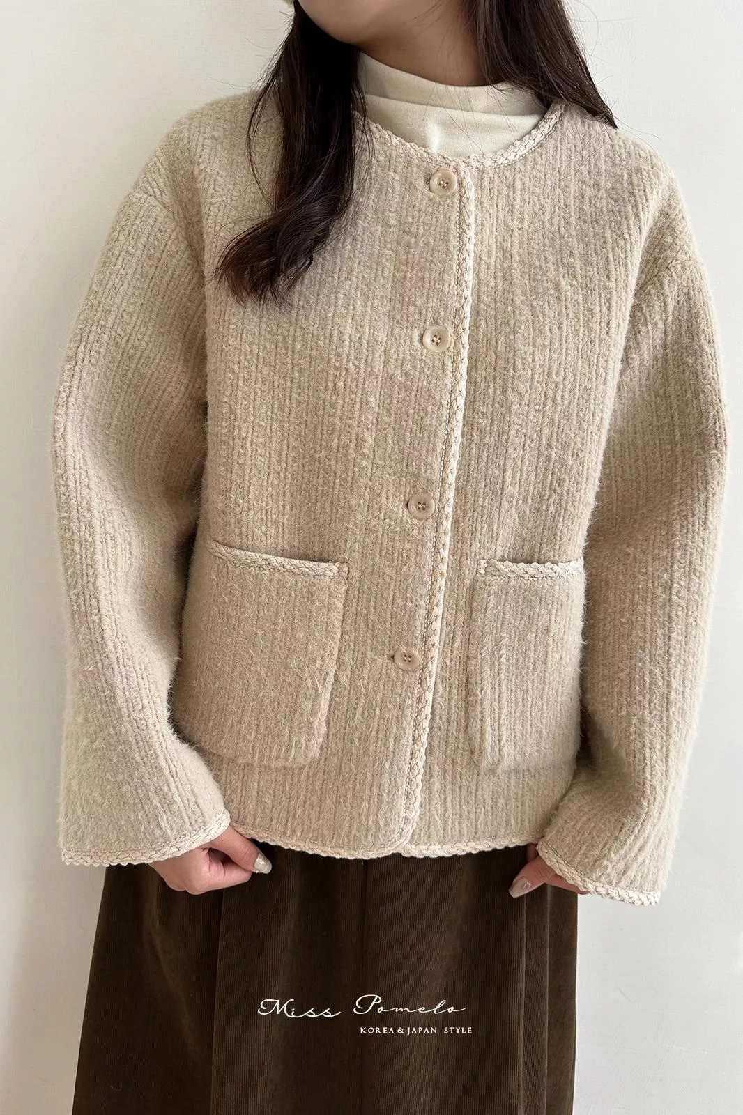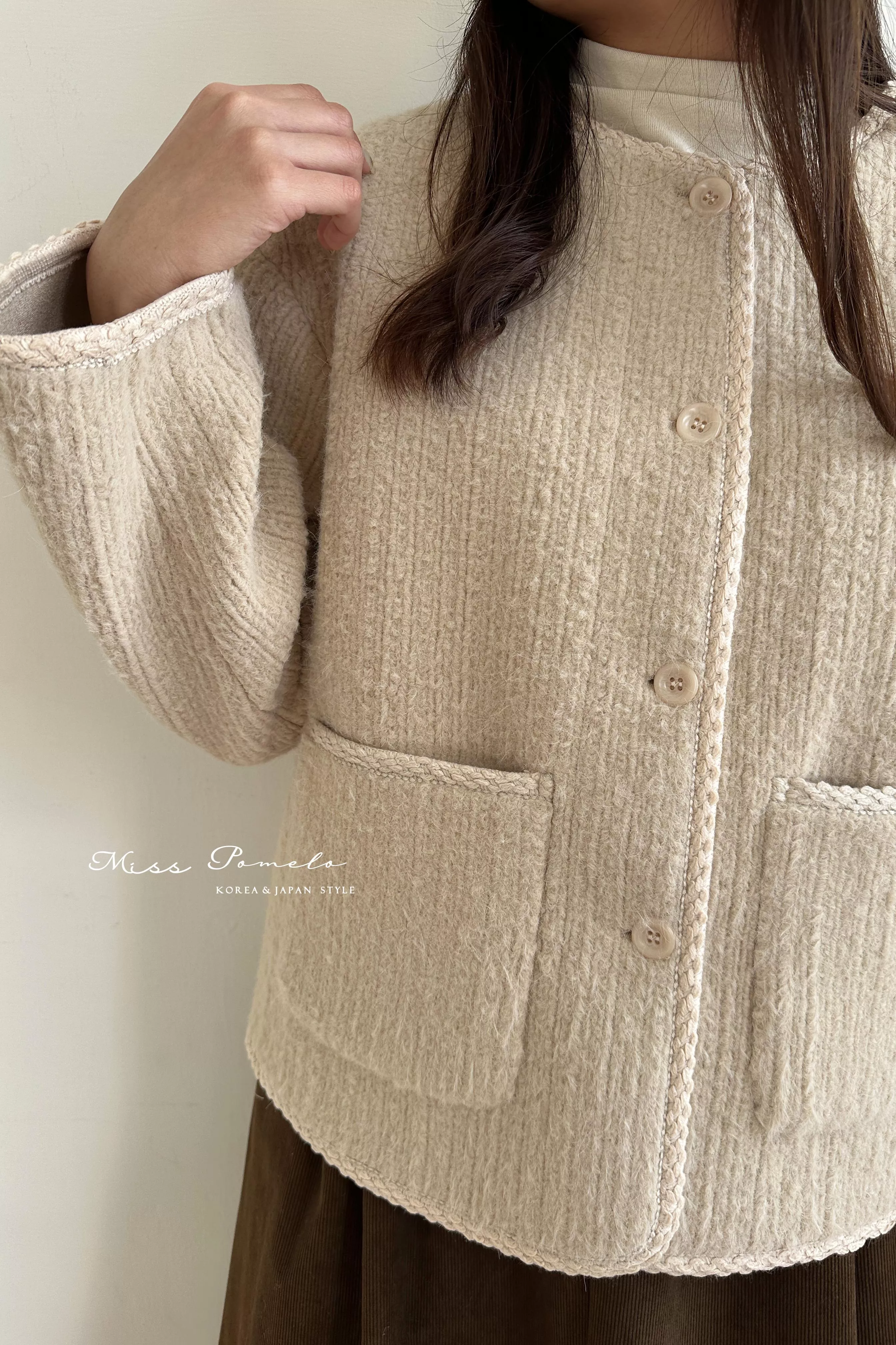 ●小香風編織滾邊大衣,外在有型,美在細節