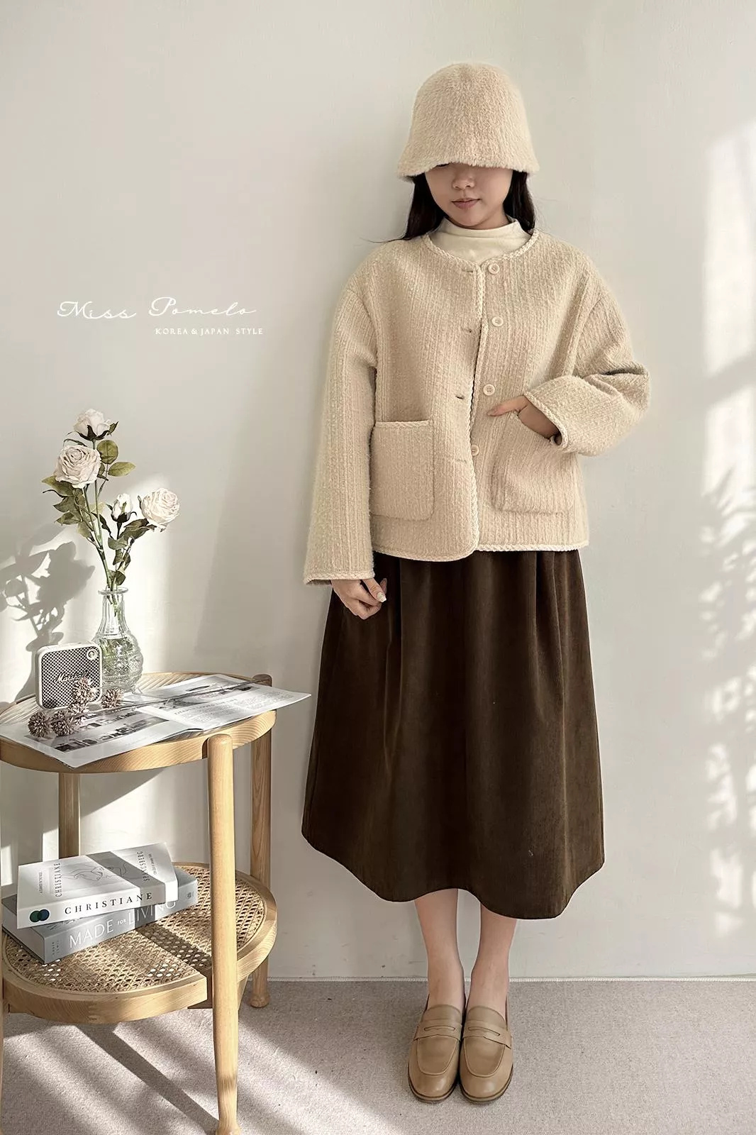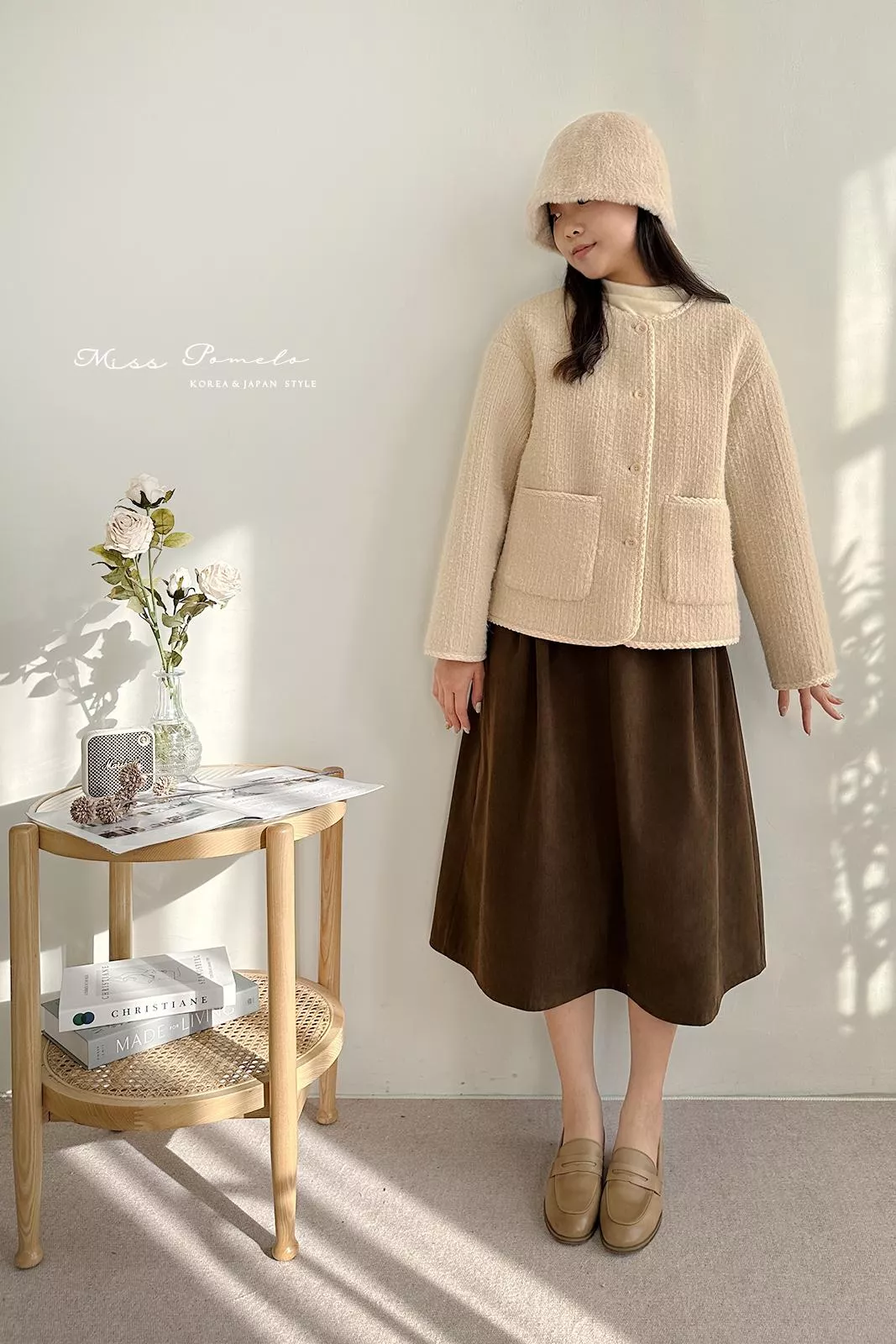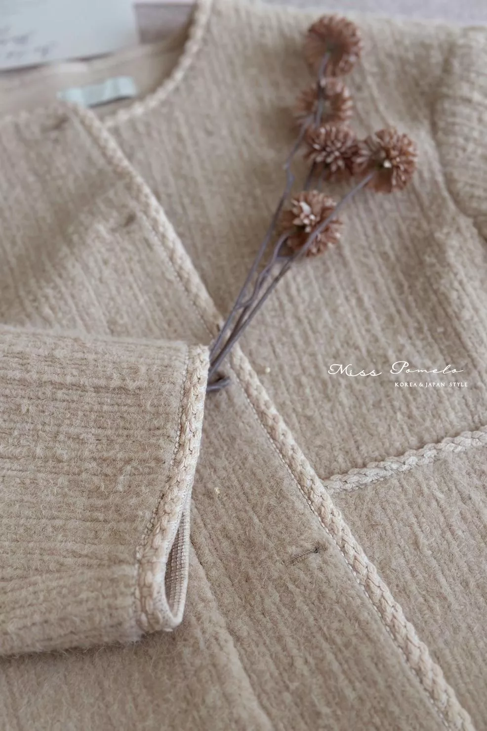 ●含50%羊毛,表層帶有直條肌理感絨毛,毛感蓬鬆,觸感舒適絨暖