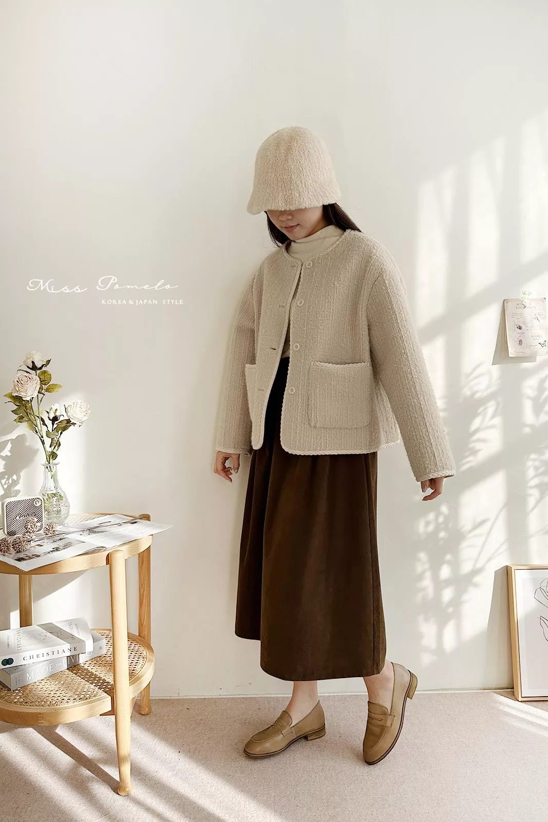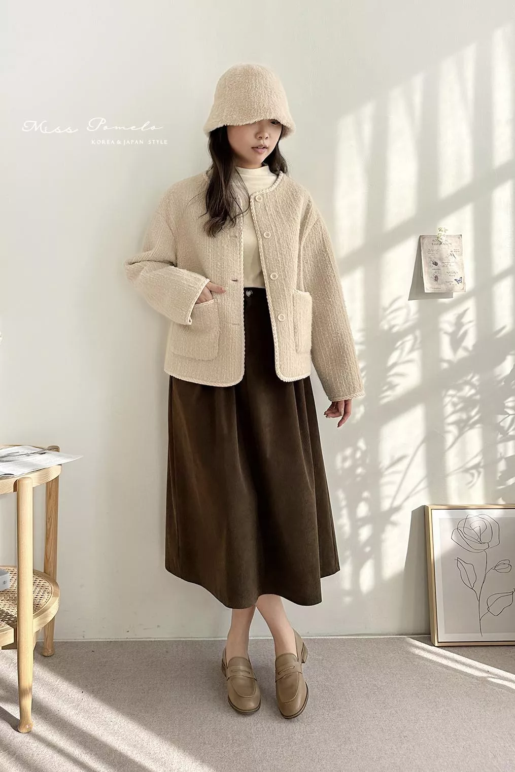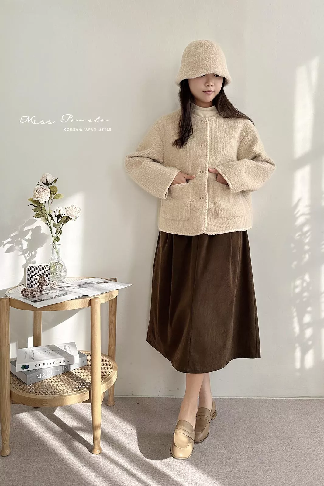 ●含50%羊毛,表層帶有直條肌理感絨毛,毛感蓬鬆,觸感舒適絨暖